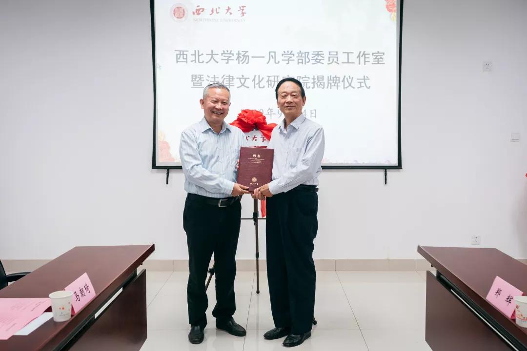 王正斌副校长与杨一凡教授共同为学部委员工作室揭牌,并代表学校向杨一凡教授颁发了首席专家聘书。王正斌副校长与武树臣教授共同为法律文化研究院揭牌。