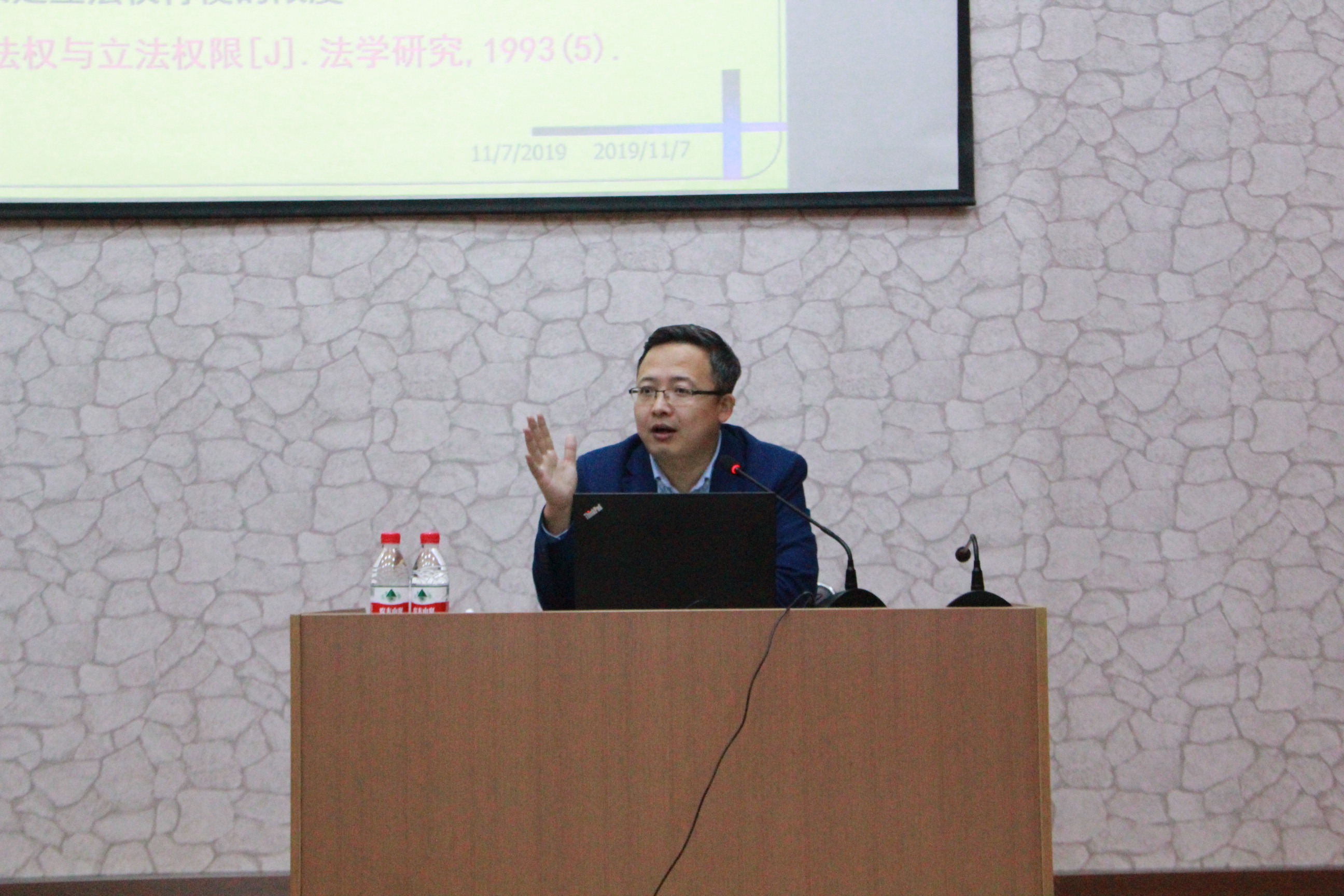 11月7日晚,由研究生院、研究生工作部主办,永利集团承办的“导师讲坛”第138讲在国家知识产权培训基地报告厅顺利举行。永利集团(知识产权学院)副院长、硕士生导师代水平副教授作了题为“建国以来我国地方立法权限变革的历程、逻辑与启示”的学术报告。本次“导师讲坛”是第十三届研究生学术活动月系列讲座之一,由永利集团张邓澜老师主持,吕康宁博士担任点评人,2018、2019级60余名硕士研究生参加了本次讲座。
