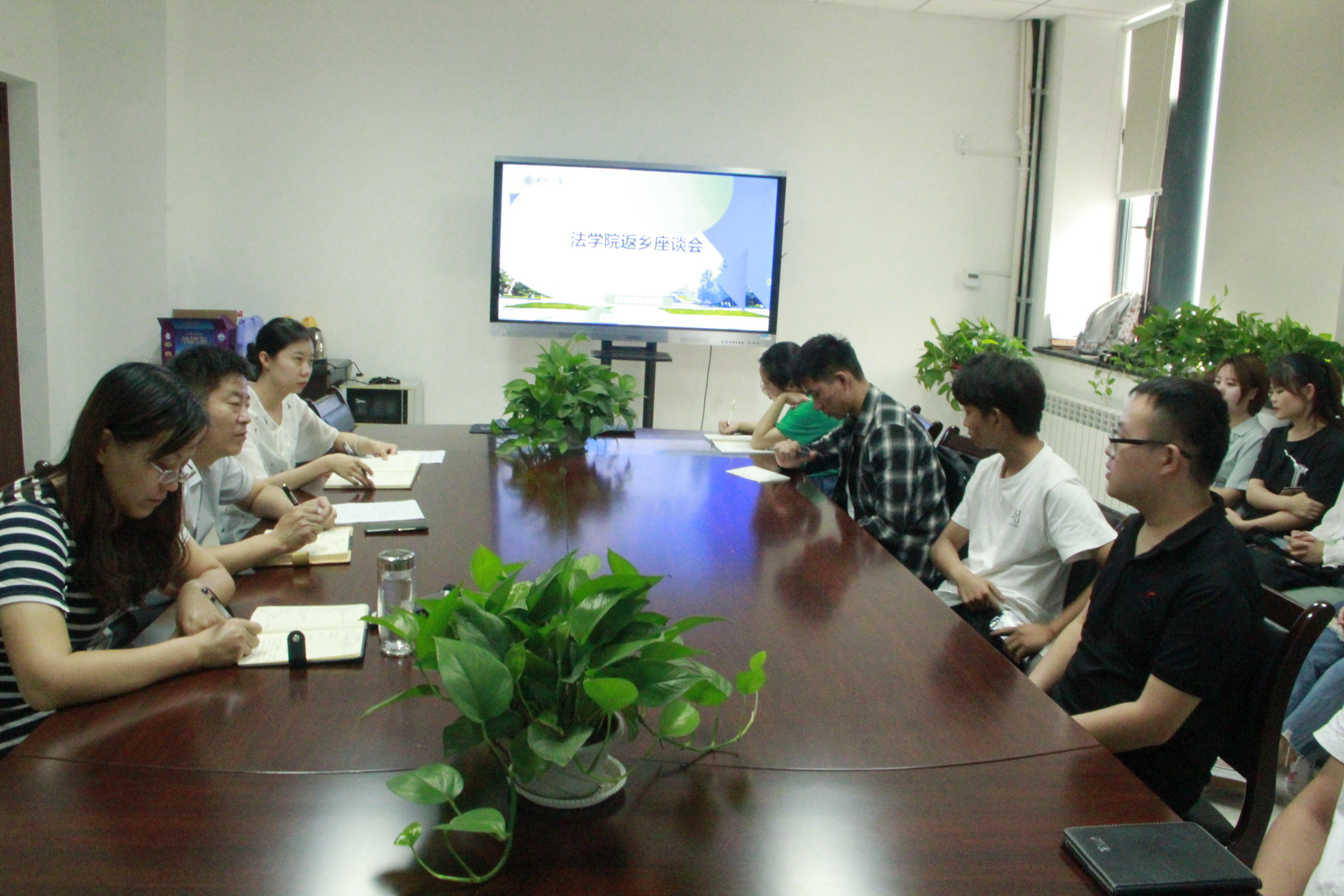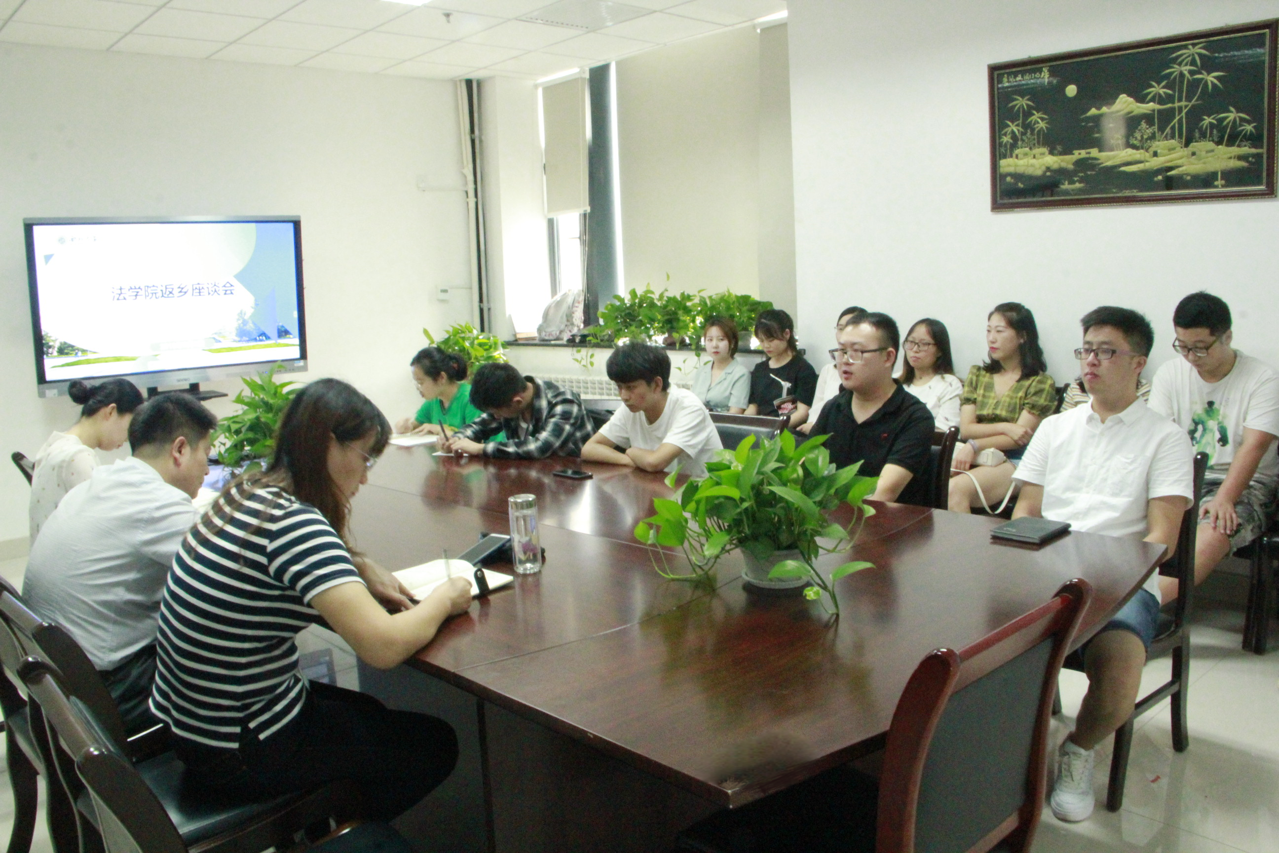 为了解我院学生暑假生活与所见所闻,9月6日下午,我院在学院会议室召开2019年暑假返乡座谈会,搭建师生交流平台。学院党委书记李一凡、副书记马丽、辅导员张邓斓以及各年级学生代表20余人到场参加,座谈会由马丽老师主持。与会学生纷纷就自身暑期见闻,以及对学校和学院提出了宝贵的建议和意见。最后由李一凡老师作会议总结,张邓斓老师布置庆祝中华人民共和国成立70周年学院活动。