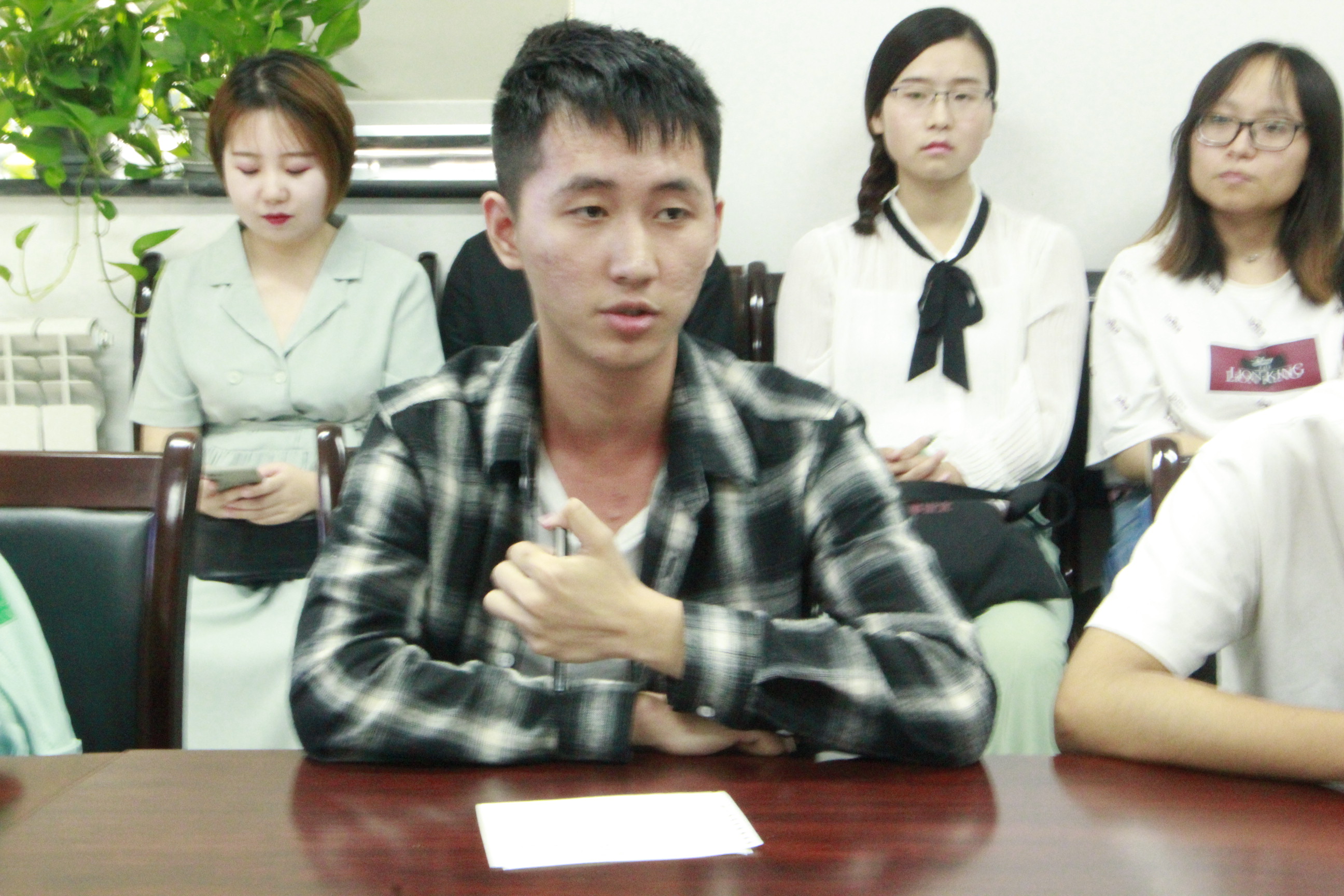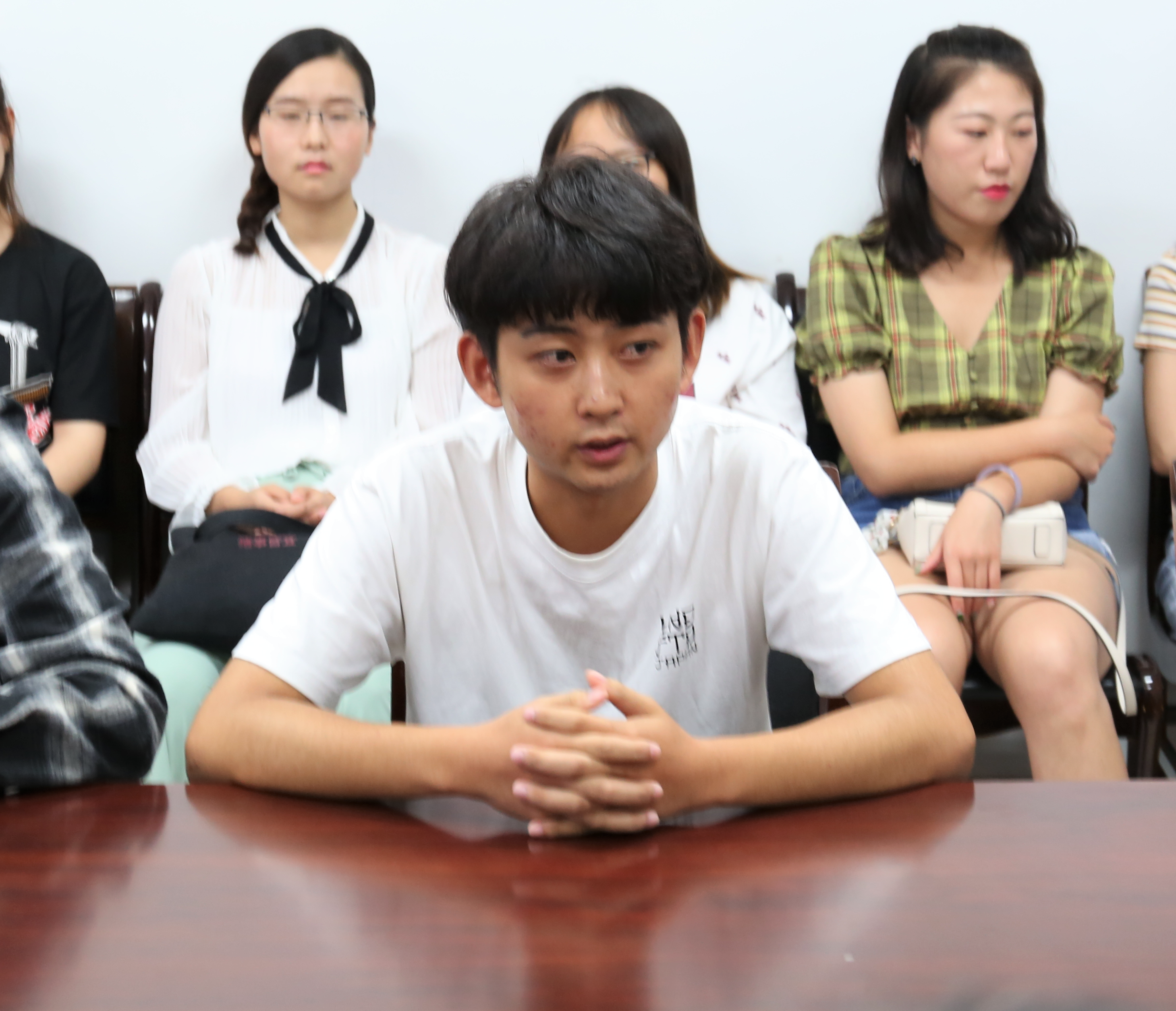 陈涛同学谈到自己在暑假参与了校友集中返校日活动并接待了永利集团的学长学姐,在这段过程中有了很多收获,并且也对学长学姐们的关怀与照顾心怀感激。其次他还谈到自己去神木参加三下乡社会实践活动,未来也会不断加强书本知识与实际法律现状的结合并积极投身法治建设。