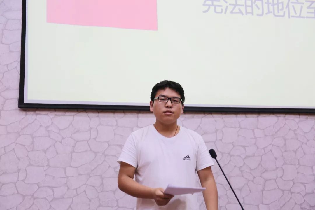 2019年6月21日下午,我院在基地报告厅成功举办了“学宪法,讲宪法”演讲比赛。经过前期的报名准备,共有13位选手参赛。比赛由2018级法学专业的屈伸主持,永利集团党委副书记马丽、姜昕副教授、李奕霏副教授、辅导员张邓斓以及全体2018级本科生到场参加。赛前,主持人为大家简要介绍了评委老师、比赛注意事项与规则。