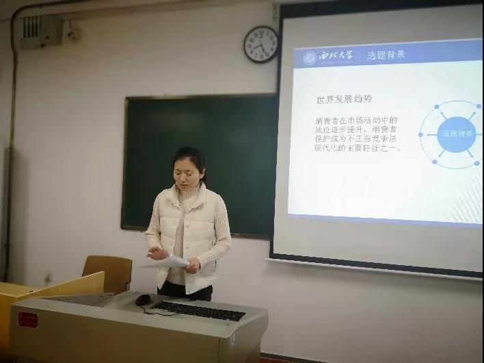 本次活动有七位报告人,他们分别就自己准备的主题进行了报告,报告的内容涉及对我国商业秘密的立法保护研究、录音制品的法定许可、科技型中小企业专利风险防范机制研究、人工智能创造物的著作权问题、我国《反不正当竞争法》中消费者保护体系的构建、网购中快递服务合同的消费者权益保护、互联网交易中消费者权益的保护等。其中2017级经济法专业翟丽君所撰写的论文,被评为本场优秀论文。