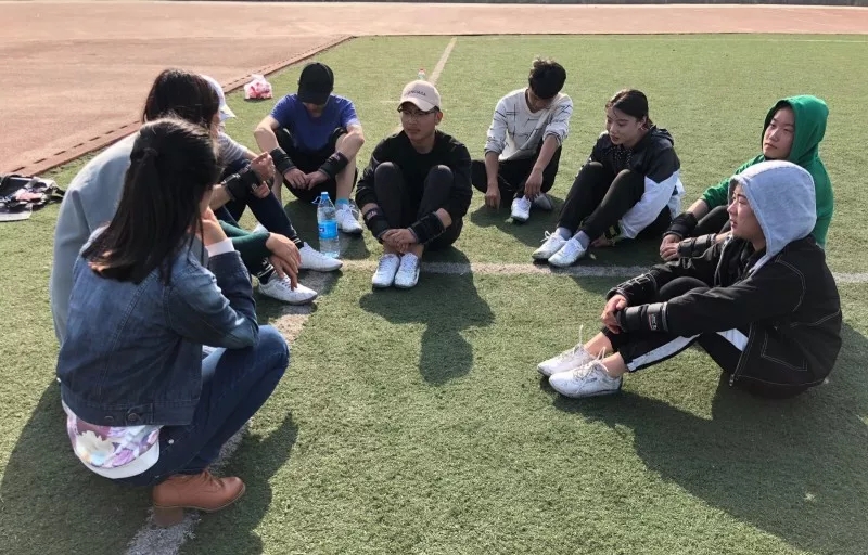 永利集团党委副书记马丽老师,本科生辅导员张邓斓老师和去年参赛队员到达健美操队训练场地,对正在辛苦训练的同学们进行了慰问与赛前经验交流。