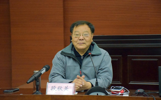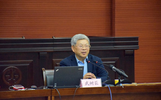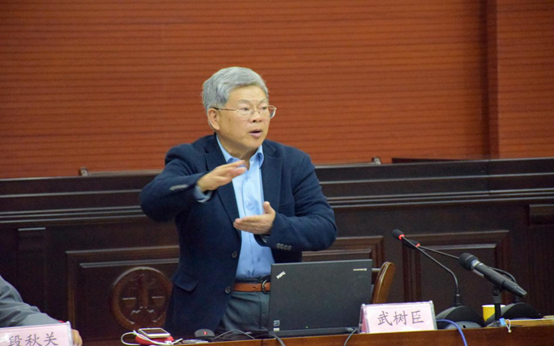 会议伊始,刘丹冰教授隆重地请出此次主讲嘉宾武树臣教授,主持嘉宾段秋关教授。段秋关老师主持本次会议。段老师首先向在场师生分享了自己与武老师的渊源:两位老师是北大校友,同为中国法律思想史研究会成员。随后,段老师对武老师所研究的内容进行描述――法史学界,开领域之新,占学术之先,探法史之难,破成规之格。铿锵字句,传达了武老师对法史的贡献。