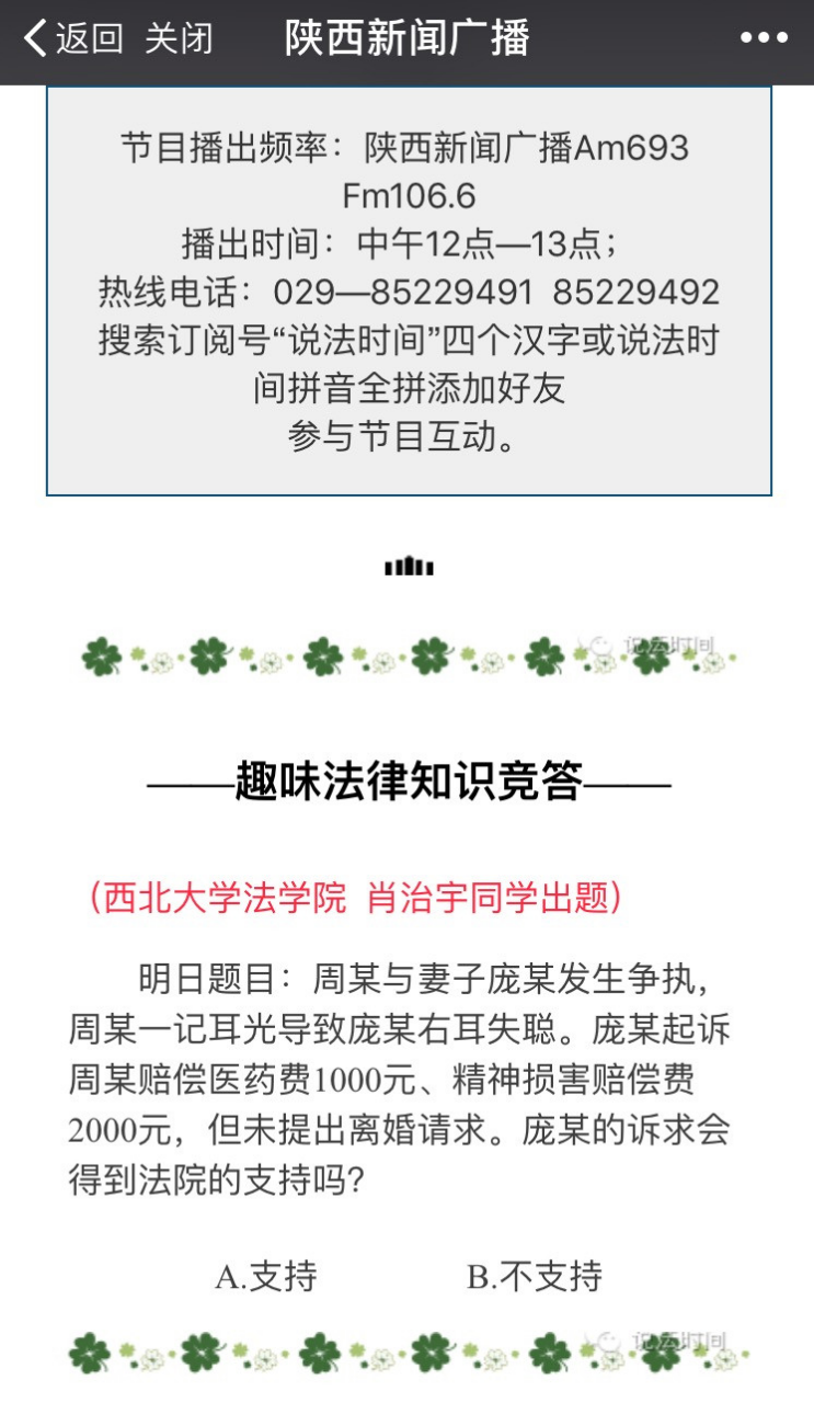 活动宣传平台:陕西广播电视台新闻广播《说法时间》节目