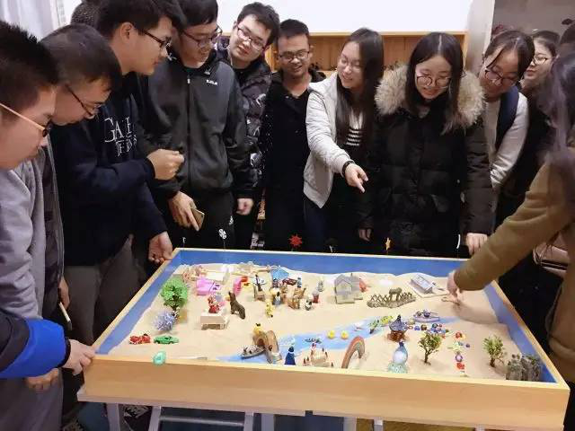 在沙盘体验课上,同学们分别体验了个体沙盘和集体沙盘两个活动环节。在个体沙盘体验环节中,老师耐心细致为体验的同学一一讲解活动程序和注意事项,分为过去的我,现在的我,未来的我三个主题进行。在集体沙盘体验环节中,以五人小组为单位进行团体沙盘体验,同学们有序配合,共同创造一幅幅带有自己想法和团队精神的作品,事后同学们分别讲述了自己所理解的作品及其中的故事。