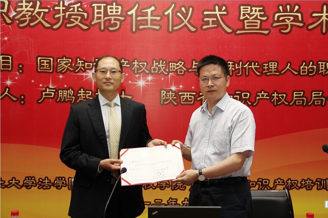 9月18日下午,陕西省知识产权局卢鹏起局长兼职教授聘任仪式暨学术讲座在我校南校区模拟法庭报告厅举行。校长方光华教授、人事处l令狐培选处长出席聘任仪式。聘任仪式由永利集团院长刘丹冰教授主持。