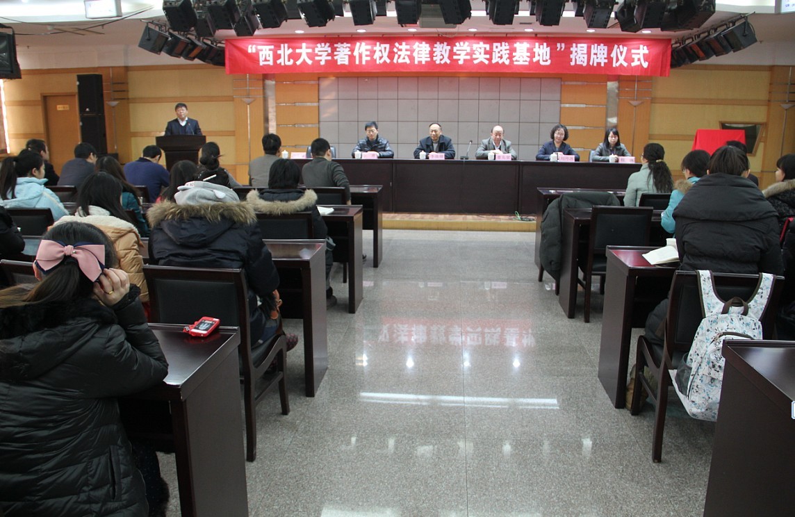 首先由我校党委副书记、纪委书记李焕卿和陕西省版权局副局长曹先觉为永利集团著作权法律教学实践基地揭牌。
