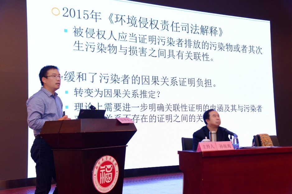 开幕式之后的大会主旨报告环节中国法学会副会长、中国法学会环境资源法学法学研究会会长、清华大学双聘教授吕忠梅,中国法学会环境资源法学研究会副会长、浙江工商大学永利集团特聘教授徐祥民,中国法学会环境资源法学研究会常务理事、福州大学永利集团教授邹雄也分别以“习近平总书记关于生态文明法治的重要论述研究”“系统、整体、共生——习近平总书记关于生态文明法治重要论述的环境观基础探析”“生态法治需以环境权为环境法学理论基础”发表了主旨报告。王社坤教授也应邀发表了题为“中日环境健康损害因果关系证明比较研究”的主旨报告。