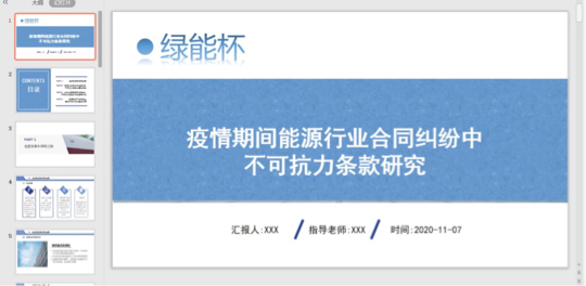 20206,在张曼副教授指导下,由学院研究生杜维娜、蒙娜和本科生翟雪健、阿尔曼江·吾买尔江组成的调研组,围绕竞赛主题,先后召开线上线下论证会议数十次,周密论证了调研大纲,科学设计了调研问卷,扎实组织了调研活动,最终形成了数据详实、论证严谨、结构合理、建议中肯的调研报告,字数达2万余字。调研报告以“疫情期间能源行业合同纠纷中不可抗力条款研究”为主题展开,对新冠疫情给能源行业造成的能源合同履行不能问题进行了深入探讨。调研小组在理论界已就新冠疫情作为不可抗力基本达成肯定意见的基础上,通过实证分析,比较了非典期间和新冠期间疫情作为不可抗力在能源合同纠纷中的应用,发现了以下问题:一是新冠疫情比非典在认定疫情作为不可抗力的问题上支持率更高;二是能源企业在该类纠纷中多为主张不可抗力的一方;三是能源企业举证方面仍有欠缺,不利于维护自身权益。基于此,调研报告提出相应的对策建议。能源企业在主张疫情作为不可抗力时,应当积极准确评估疫情对合同履约的影响,同时注意不可抗力发生后的通知和减损义务之履行,建议能源企业以书面形式对相关证据及时留存为预防疫情等突发状况的不利影响,能源企业可以通过合同免责条款的列举设计和概括设计提前做好纠纷解决的应对预案,也可以通过前期的风险管理来降低损失。