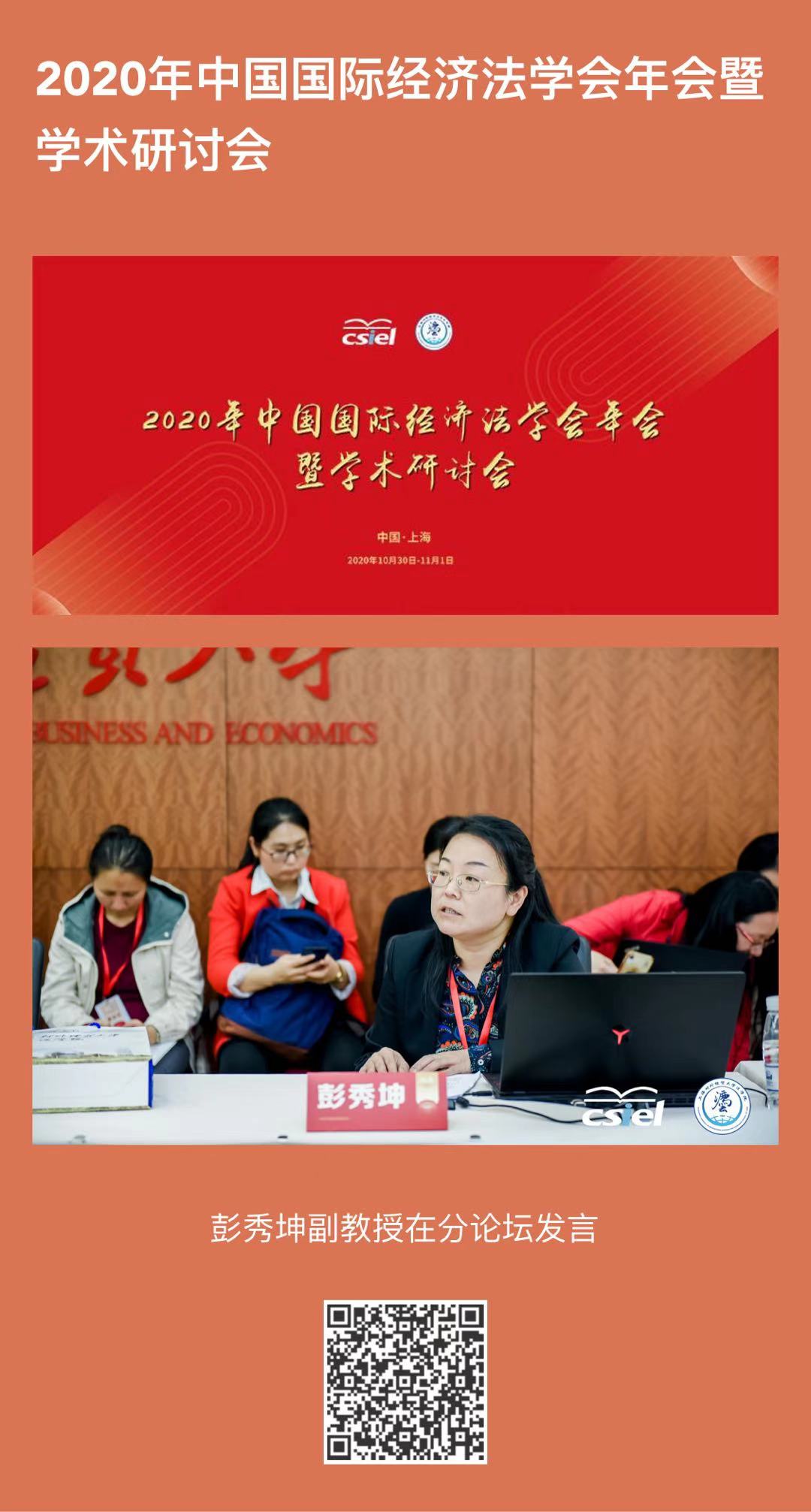 2020年10月31日上午,由中国国际经济法学会主办、上海对外经贸大学承办的“2020年中国国际经济法学会年会暨学术研讨会”在上海隆重召开。开幕式由上海对外经贸大学永利集团院长张庆麟教授主持。WTO上诉机构前主席、ICSID仲裁员、清华大学国际争端解决研究院院长、中国国际法学会副会长张月姣教授,商务部条约法律司叶军巡视员,外交部条约法律司孙劲参赞,中国国际经济法学会会长曾华群教授,中国国际经济法学会副会长韩龙教授等参会并进行了主题报告。来自全国各地的数百名国际经济法学领域的专家学者和实务界代表齐聚会议现场,我院彭秀坤副教授和田海副教授应邀参加了本届年会,并各自在“区块链金融、数字货币及其监管问题”和“新冠疫情与国际经济法的新问题”等分论坛发言。