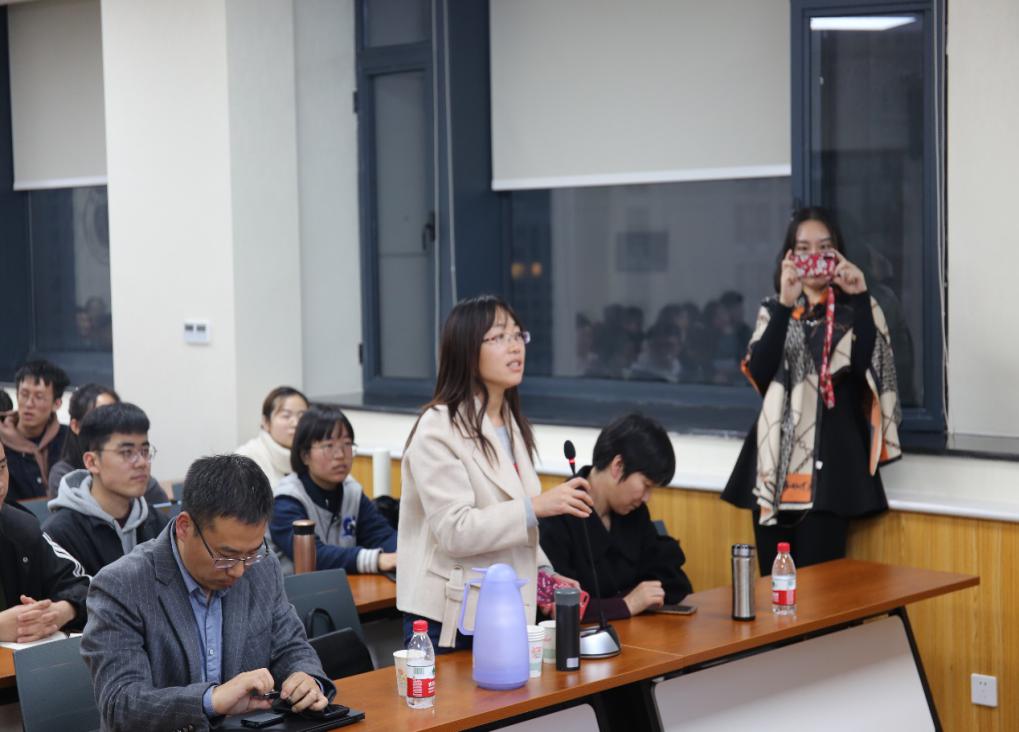 在提问环节,在场师生热情高涨,积极互动。王灿发教授对提出的私权的限制、环境法是否具有阶级性等问题进行耐心地解答。