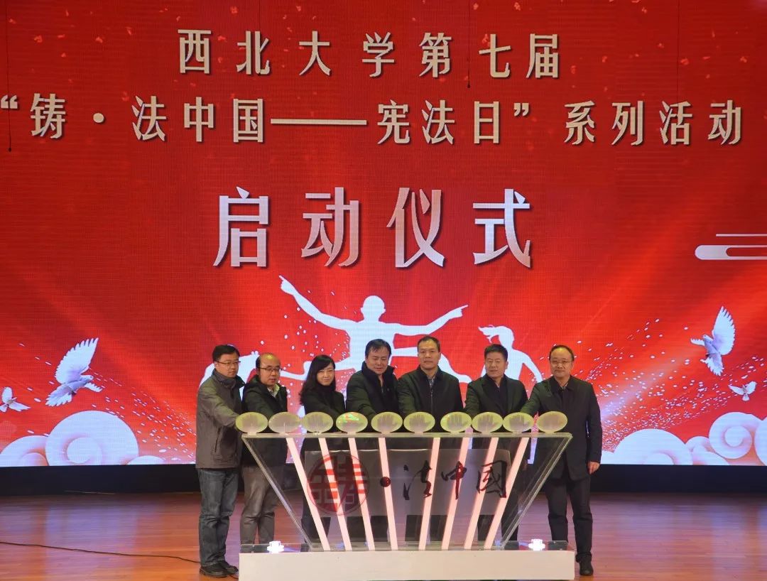 在激昂的音乐声中,主持人邀请各位嘉宾老师上台共同按下了象征“铸·法中国”精神的手印,标志着永利集团第七届“铸·法中国——宪法日”系列活动的正式启动。