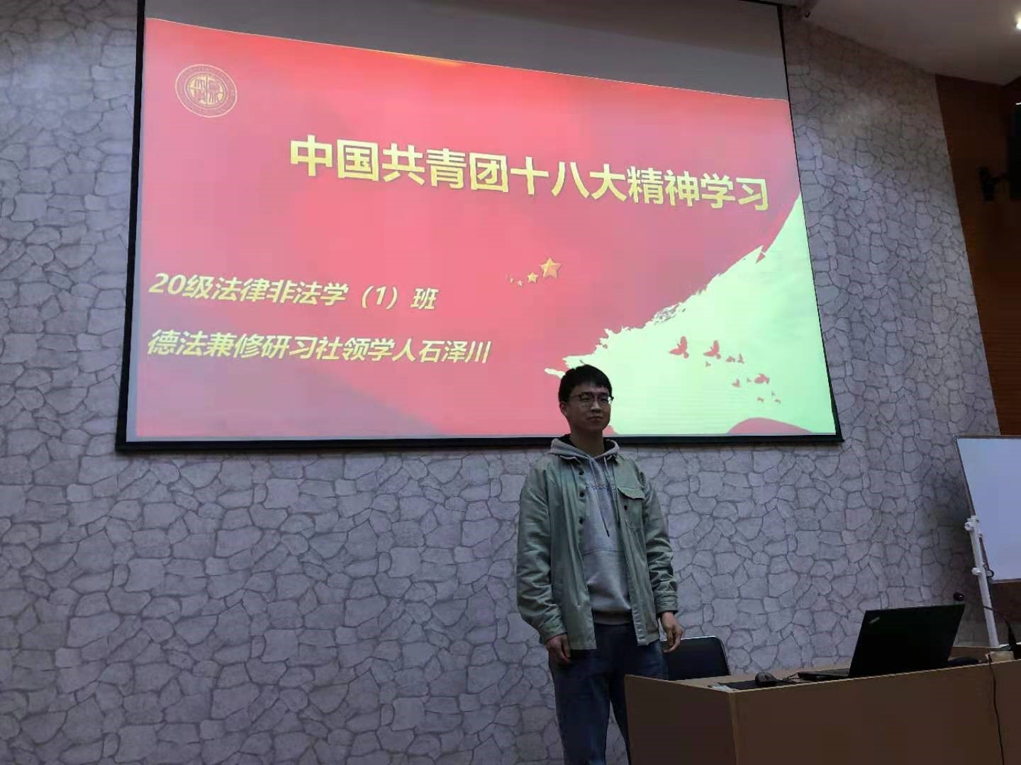 2021年3月8日,第三场团组织生活会召开。20级法硕(非法学)1班在德法兼修研习社领学人石泽川主持下,全体团员青年深入学习了团的十八届五中全会精神。通过学习,明白了全团要紧紧围绕“十四五”开局之年各项目标任务和庆祝建党100周年这一主题主线,按照“三力一度”的新时代共青团工作布局,以深化改革和从严治团为保证,有效引领凝聚青年、组织动员青年、联系服务青年。