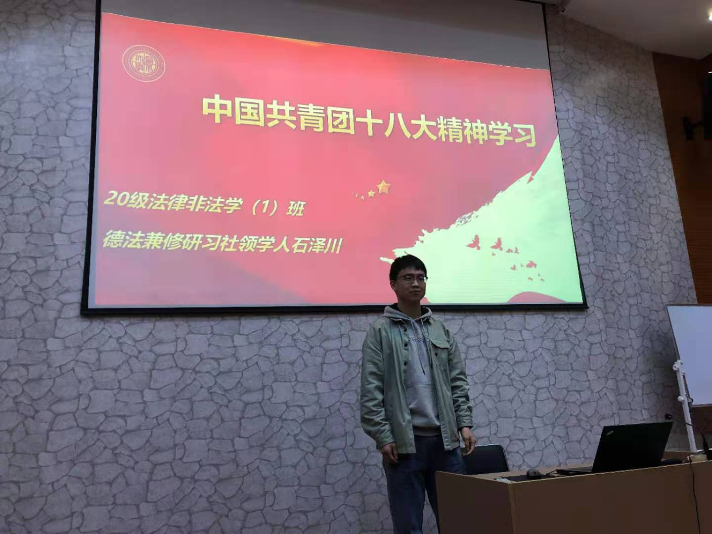 2021年3月9日,第四场团组织生活会召开,由德法兼修研习社石珂珂作为领学人进行汇报讲解。20级学硕团员青年经过学习探讨,领悟了党史学习的重要性,通过回顾党的发展历史和重大事件,深度理解了党的重要会议和思想创新,并坚定不移的宣誓承载着党的使命向未来展望。