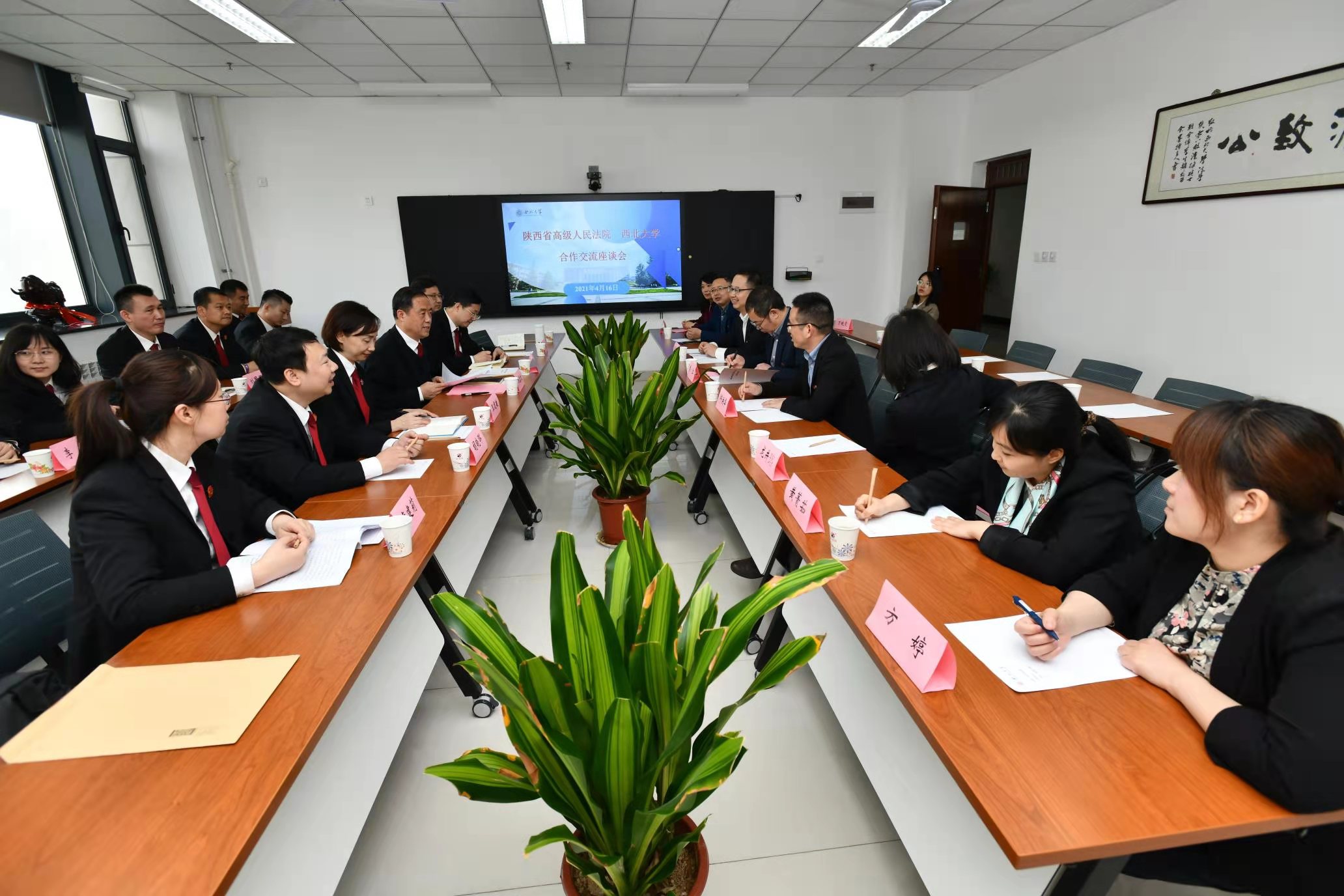 签约仪式后,校党委常委、副校长常江陪同巩富文副院长一行到学院模拟法庭、知识产权信息检索与分析实验室进行了参观考察,并召开了座谈交流会,对协议中相关事项的落实进行了深入沟通。双方表示今后一定要加强联系,资源共享,共同打造人民法院和高校合作的新样板,为提高法治人才培养质量和推进法治陕西建设贡献更多智慧和力量。
