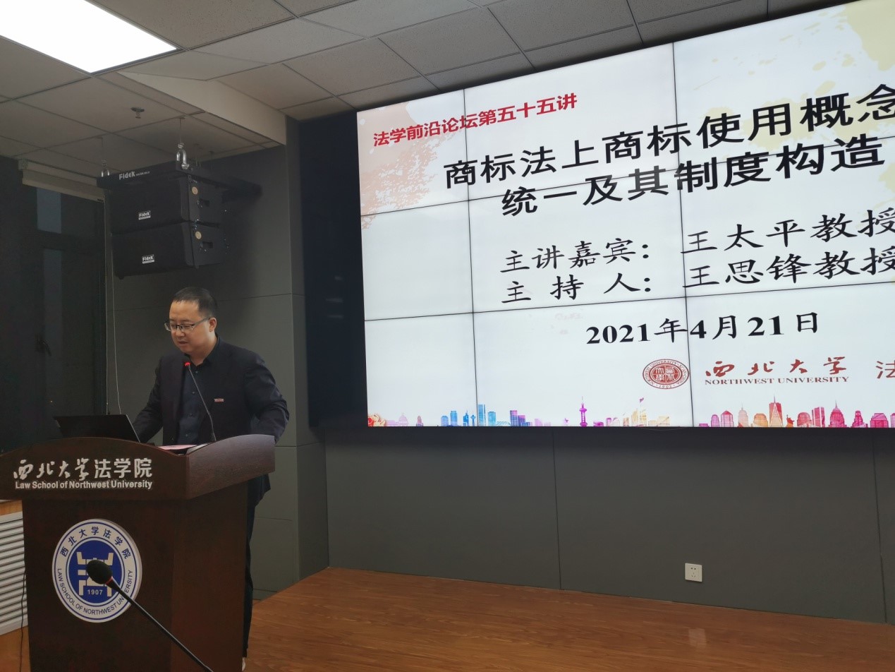 4月21日晚上,广东外语外贸大学永利集团王太平教授受邀做客我院“法学前沿论坛”,为学院师生做了题为“商标法上商标使用概念的统一及其制度构造”的学术讲座。学院院长王思锋教授、副院长邱洪华教授以及教师代表虎有泽教授、李奕霏副教授、方婷博士和刘桢博士等师生代表100余人参加了本次讲座,讲座由王思锋教授主持。