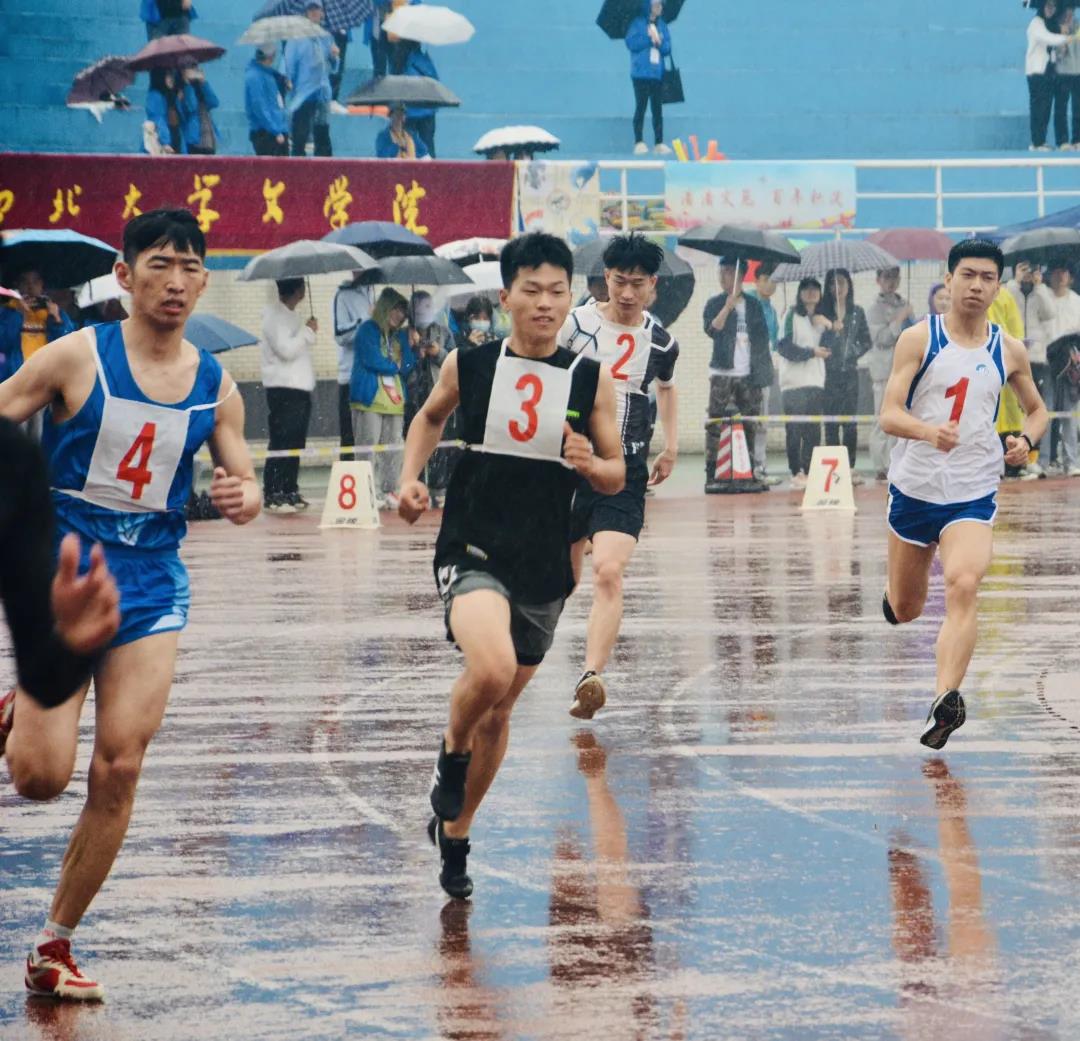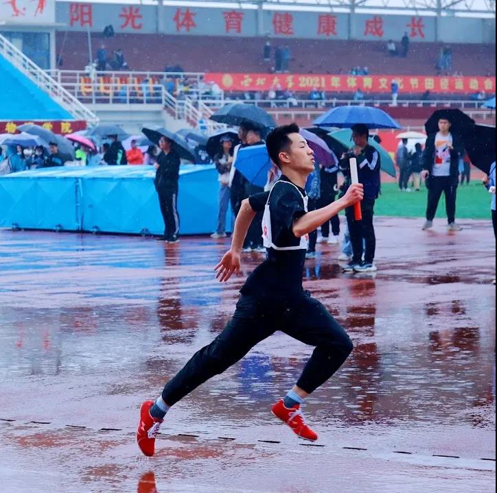 不同于昨天的阳光明媚,今天阴云密布,雨势也渐渐变大,但这并不能冷却运动健儿们火热的内心。田径场上依旧欢呼声不断,加油和呐喊声给予运动员们更大的勇气和力量。运动员们奋力一搏,在运动会的尾声留下精彩的瞬间,无悔的结果。