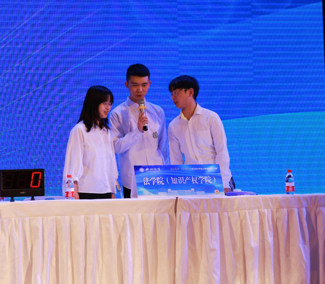 我院代表队选择了三号题。视频以动画形式体现了“同理心”与“”同情心”两种不同的心理。第一问为同情心与同理心的区别,洪子威同学一马当先,镇定自若,提出了自己的见解。李思睿同学接着回答了第二问“怎样在生活中成为有同理心的人”,思维敏锐,条理清晰。杨文龙同学则完美补充了两位队员的回答。三位队员配合默契,环环相扣,获得26分,共计171分。