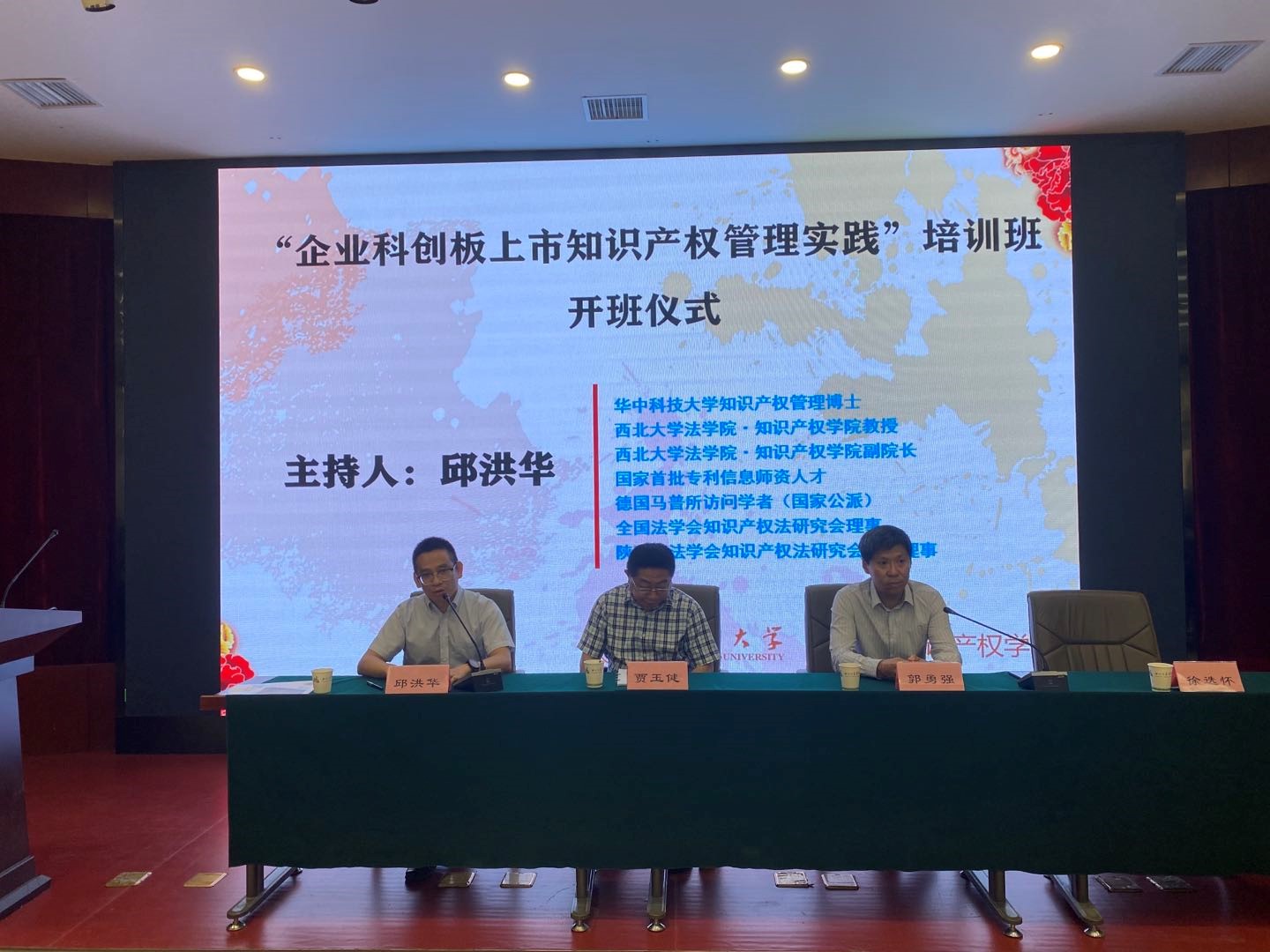 在培训班的开班仪式上,主持人邱洪华教授介绍了本次培训班的开办背景、目的以及出席开班仪式的主要领导嘉宾。随后,西安市市场监督管理局知识产权促进处郭勇强处长从珍惜机会、知行合一、加强交流三个方面进行发言致辞,对学员们提出了期望和要求。