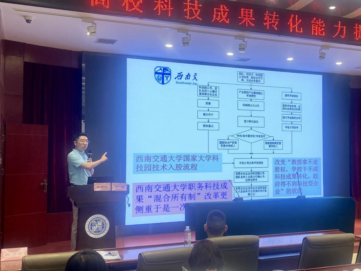 西南交通大学公共管理与政永利集团刘鑫教授为培训班主讲第三场报告,主题为“高校专利技术转移政策与实践”。刘教授从专利实施率、专利产业化率、专利转让率、专利入股比例等几个指标,介绍了我国高校专利技术转移的基本情况,在此基础上,对科技成果转化相关的制度和政策进行了要点解读,然后对高校职务科技成果权属问题进行分析,进而结合西南交大的实践,对职务科技成果权属混合所有制改革的历程、法律依据、突破点、成效展开了详细和深入地解读,最后,还对知识产权价值评估时采用的成本法、市场法、收益法等方法及它们之间的区别进行了解释,并针对高校的知识产权管理与技术转移问题提出了自己的建议和思考。