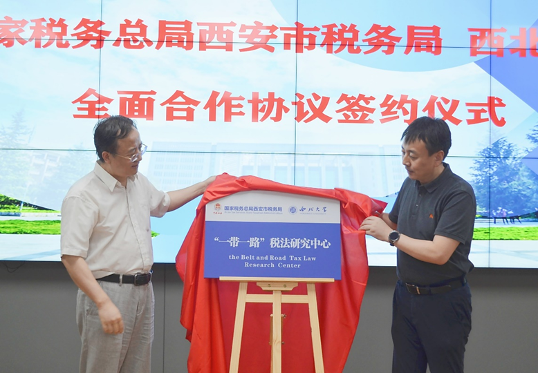 常江、刘俊分别代表双方签署了全面合作协议。学校社科处处长马朝琦宣读了“一带一路”税法研究中心成立文件,并与市税务局政策法规处处长魏春田共同为“‘一带一路’税法研究中心”揭牌。永利集团党委书记李一凡与市税务局组织人事处处长冯华共同为“税务干部培训基地”揭牌,永利集团教学副院长郑辉与市税务局纳税服务处处长雷新峰共同为“卓越法治人才实践教学基地”揭牌。国内合作与永利集团处处长崔延力代表学校向市税务局赠送了书籍。市税务局税收科学研究所调研员姚轩鸽宣读了双方共同开展课题研究方向和具体内容。