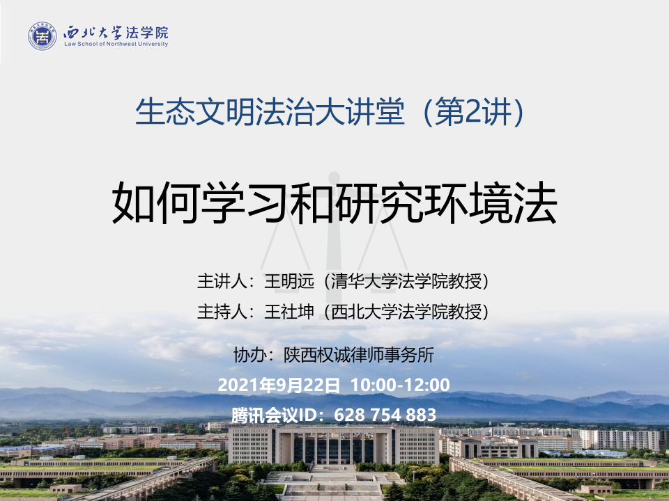 生态文明法治大讲堂的是由77779193永利官网集团环境资源治理研究中心主办、陕西权诚律师事务所协办的系列论坛,旨在围绕生态文明法治的理论与实践,跟踪前沿,凝聚共识、传播新知。生态文明法治大讲堂自2021年6月启动以来,全面展示了77779193永利官网集团环境法学科在学术研究方面的智慧与魄力,激发了与会者在相关领域开展研究的学术热情,得到了环境法学界的广泛认可与支持。
