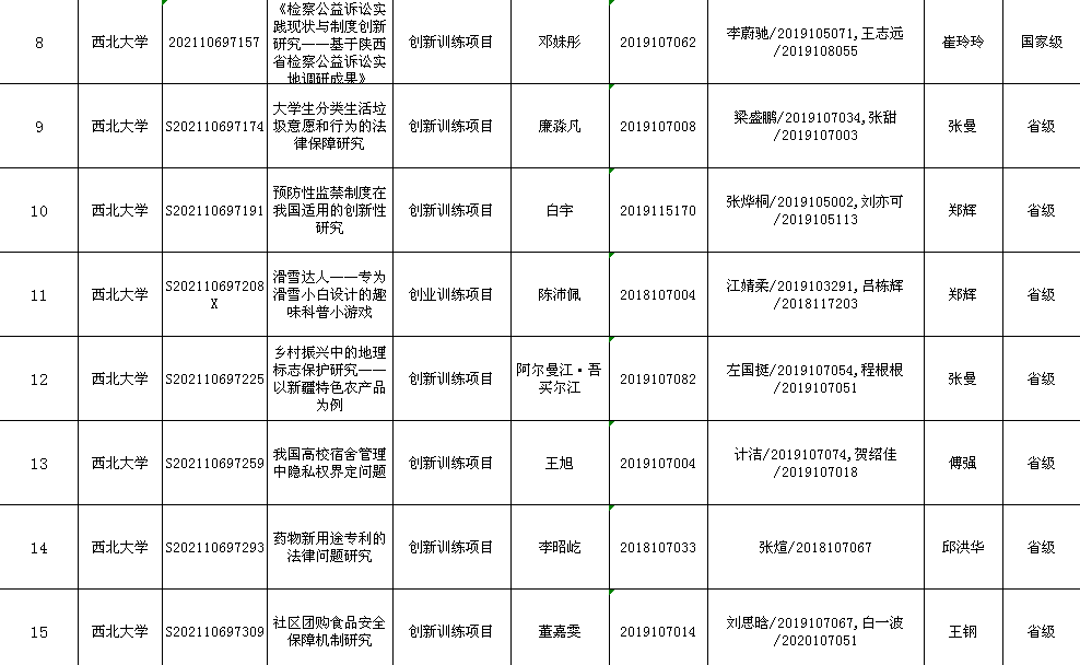 根据陕西省教育厅《关于公布2021年大学生创新创业训练计划项目名单的通知》(陕教高办﹝2021﹞21号),我院共17个项目获批立项,其中,国家级项目8项,省级项目9项。(名单见附件)。