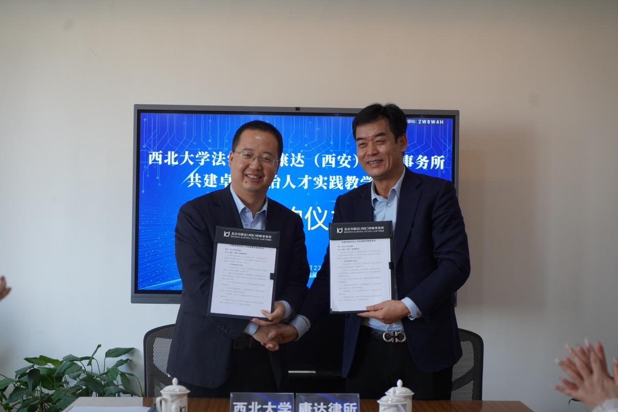 2021年11月22日上午,我院与北京康达(西安)律师事务所合作共建法学实践教学基地签约仪式暨支部联合党建活动在北京康达(西安)律师事务所会议中心举行。学院院长王思锋教授、副院长邱洪华教授、民商法教研部涂慧主任、杨丽珍教授、龙井瑢副教授、杜路副教授、方婷老师,北京康达(西安)律师事务所王小军主任、管委会廉高波主任、张正伟律师、周永伟律师、史玮律师、张海兴律师、肖鸿炜律师、魏西京律师以及校友孙继民律师、刘聿翀律师、苏洁律师等参加了签约仪式和支部共建活动。签约仪式由北京康达(西安)律师事务所高级合伙人白玉律师主持。