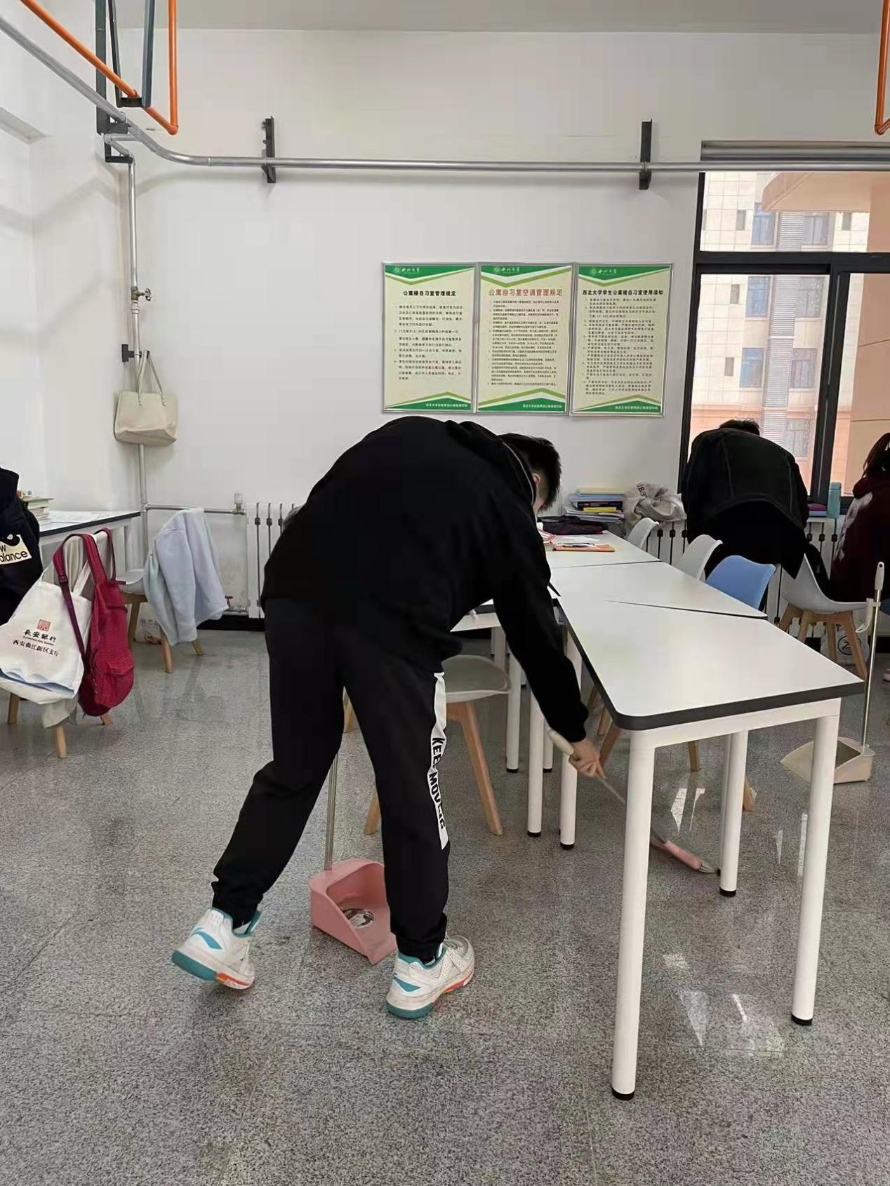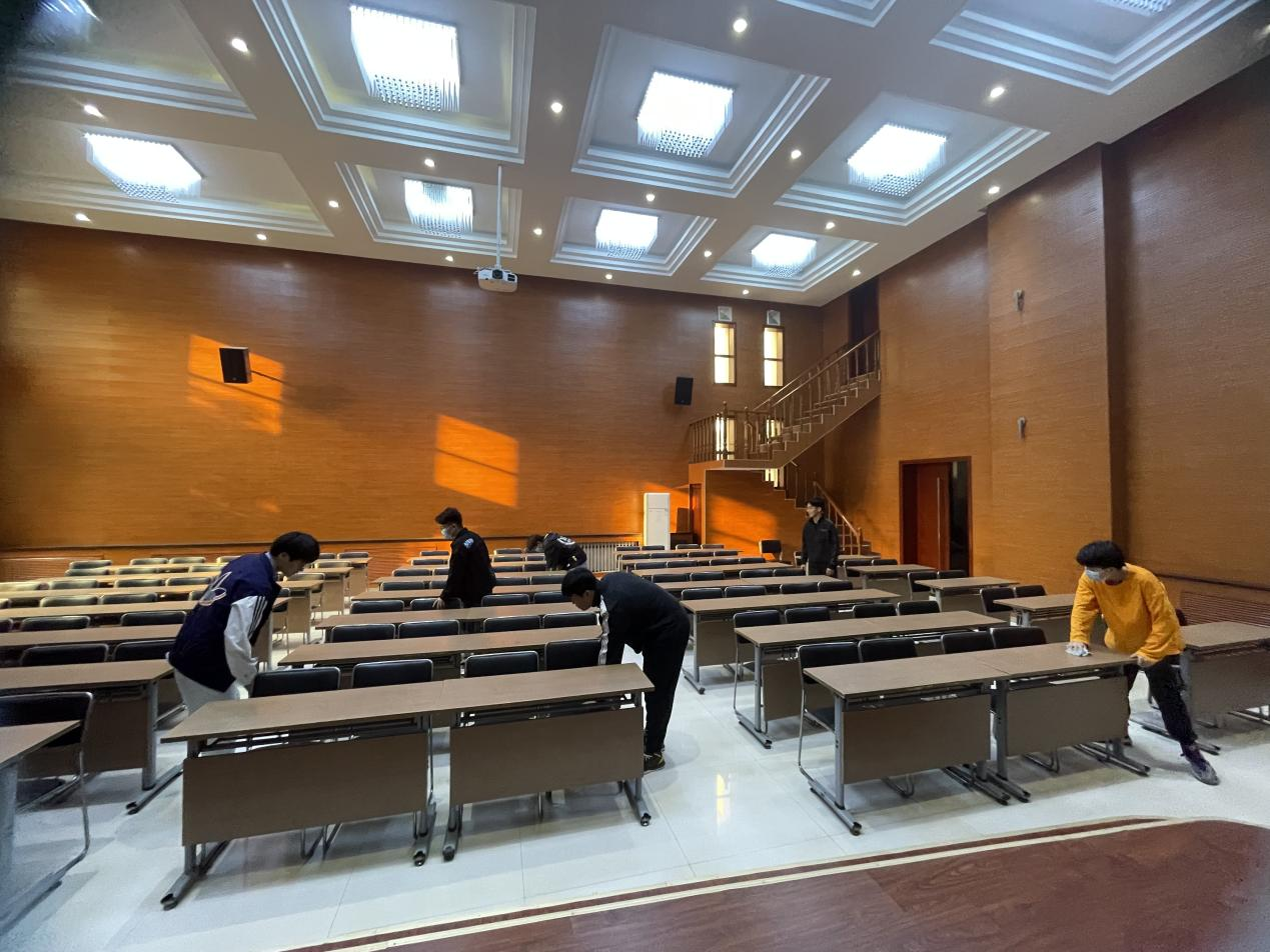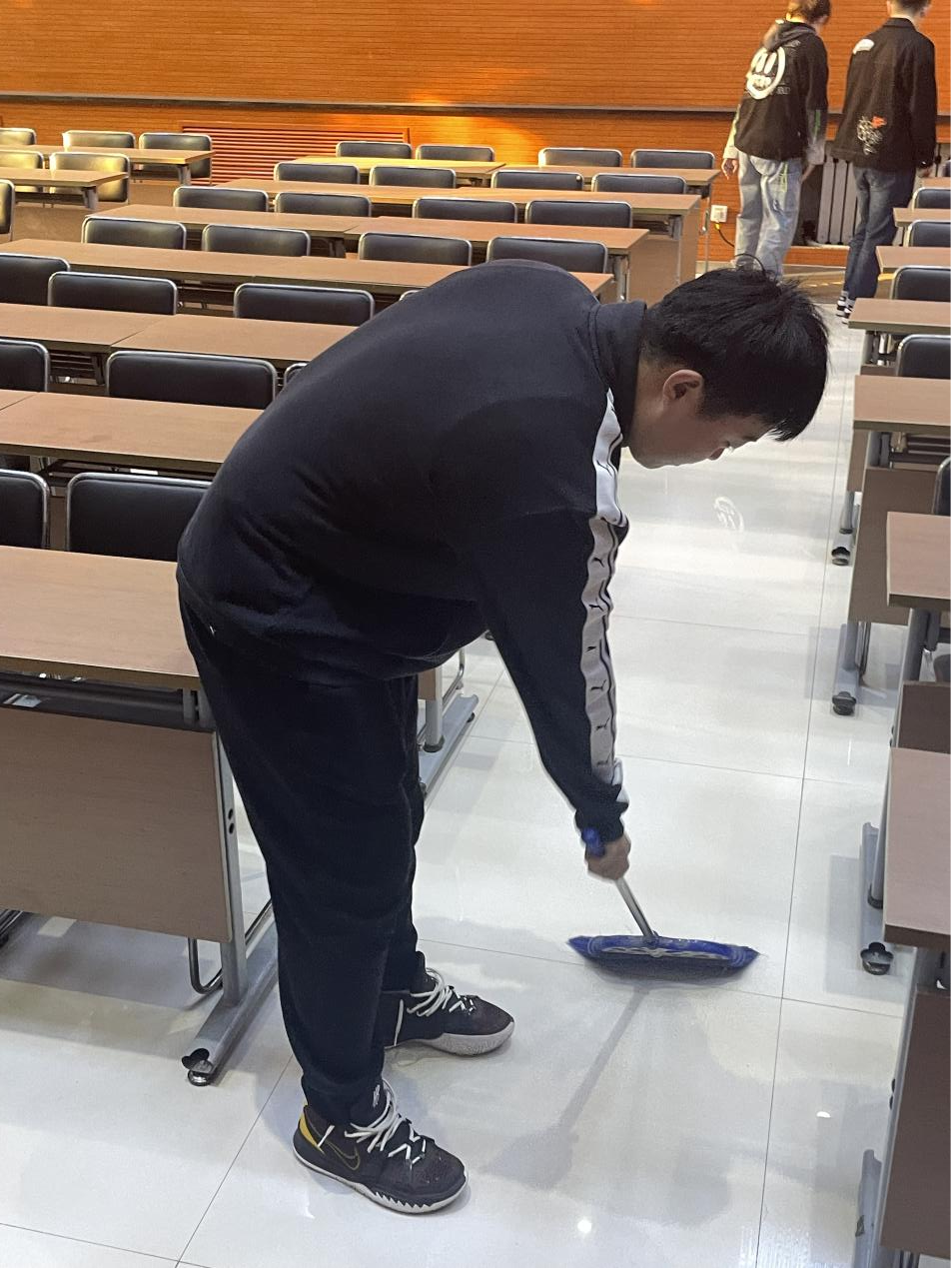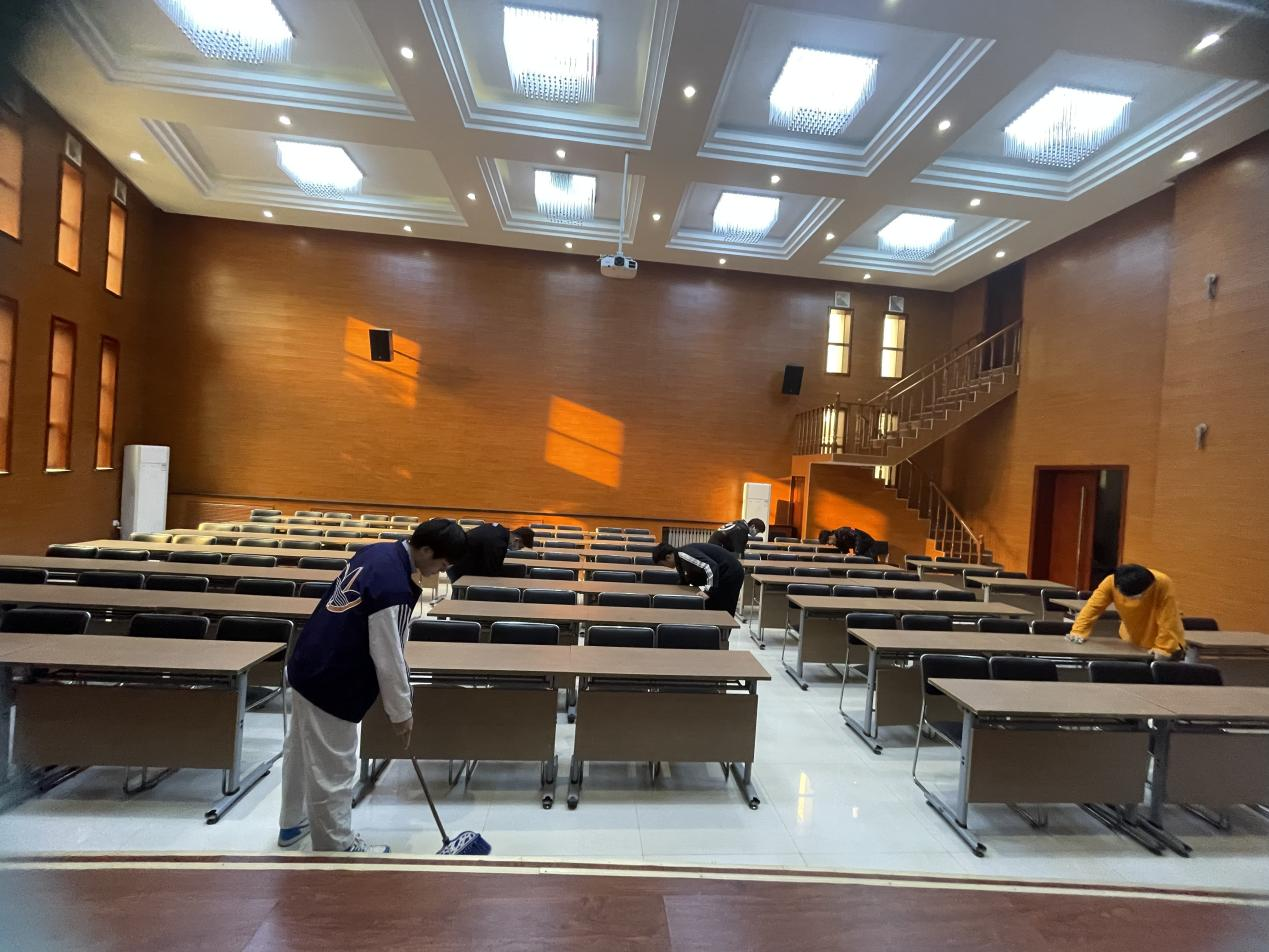 同时,学院同步对所负责的基地报告厅开展了卫生大扫除活动,动员全体同学积极参加。参与活动的同学们热情高涨、干劲十足,充分展现出了新时代青年的责任担当和党员先锋模范带头作用。