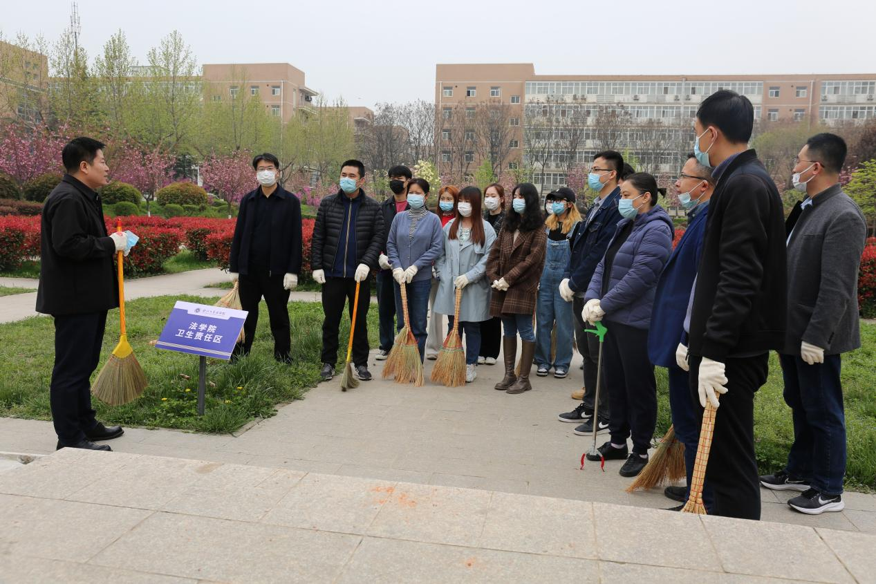 3月30日,在学院党委书记李一凡的带领下,本院20余名师生在学院公共卫生责任区开展“新时代爱国卫生运动”劳动实践活动。