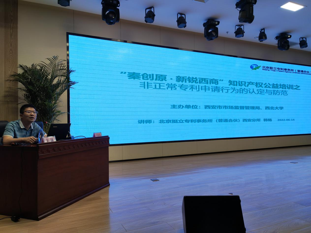 北京挺立专利事务所(普通合伙)西安分所主任韩畅为培训班授课