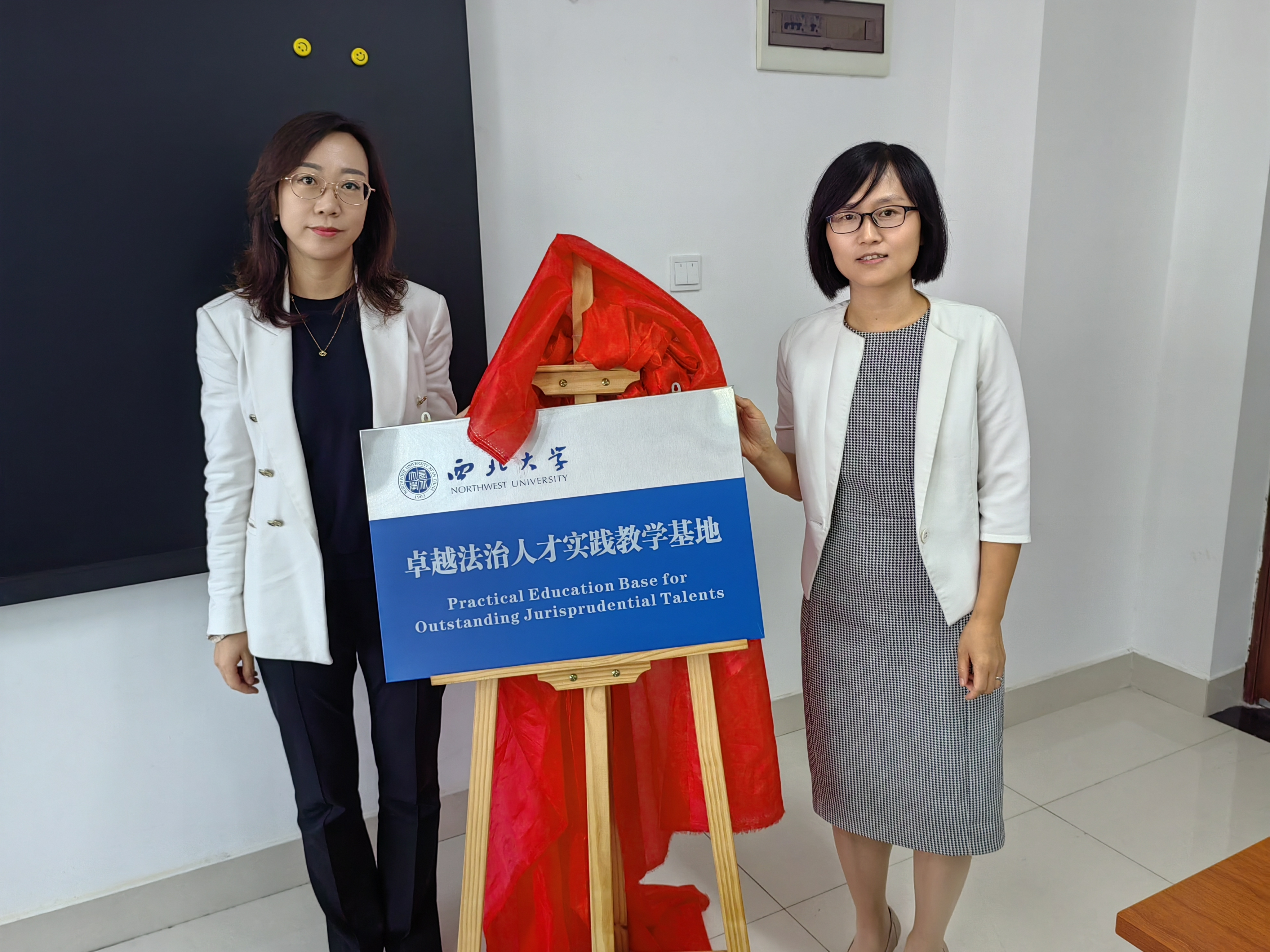 西咸新区劳动人事争议仲裁院副院长王莉和学院副院长崔玲玲共同为卓越法治人才实践教学基地揭牌。
