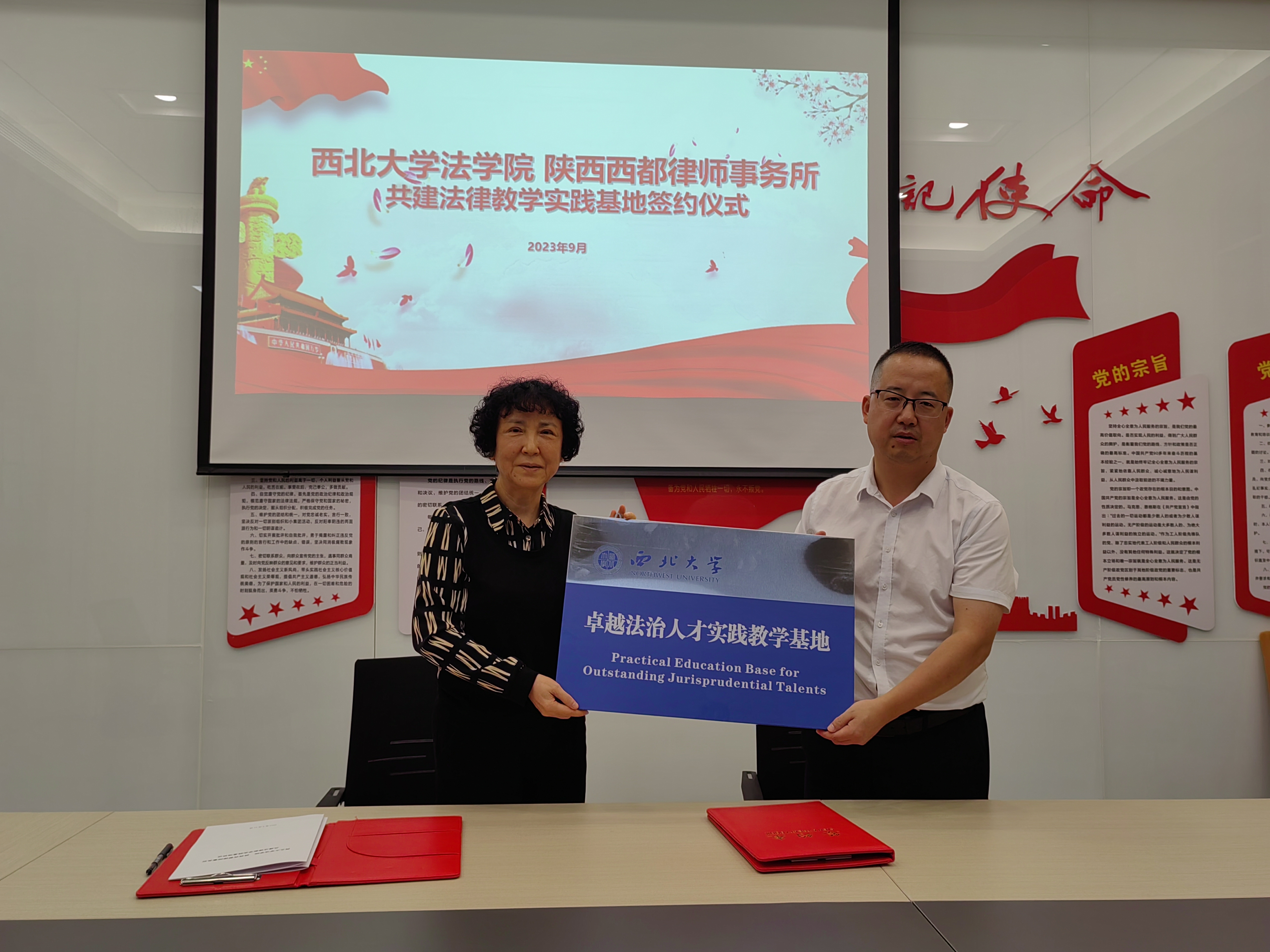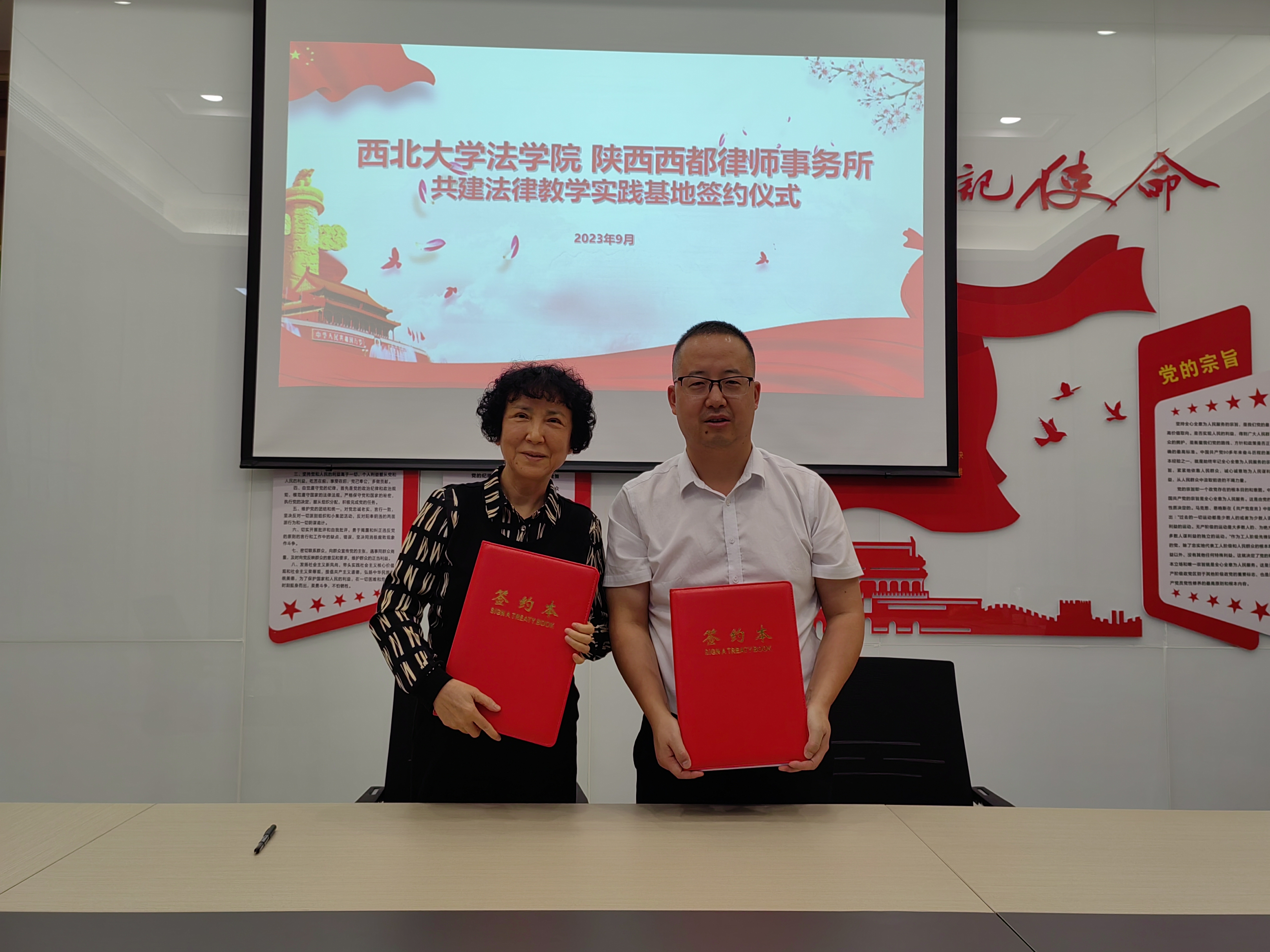 2023年9月21日下午,我院与陕西西都律师事务所共建法律教学实践基地签约仪式在西安市雁塔区清华科技园顺利举行。陕西西都律师事务所主任任汉英、合伙人陈忠槐、执行主任毛加兴、王一筱律师、罗康律师、单富睿律师,学院王思锋院长、丁晓雯副书记、办公室王哲主任、辅导员杨霁明老师老师参加签约仪式。