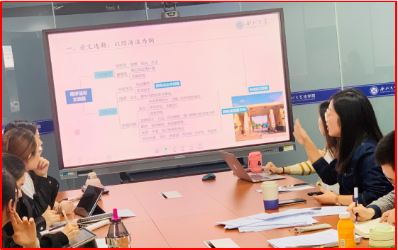 本届学术活动月,学院共组织了二十二场研究生学术报告,主题涉及民商法学、刑法学、诉讼法学、知识产权、中国法律史等多个方面。学术汇报采取圆桌论坛的形式,每场报告均由学生作主题分享,指导老师组织讨论并对论文进行点评。参与的老师有赵海怡教授、郑辉副教授、刘建仓副教授、卞辉副教授、张曼副教授、代水平副教授、龙井瑢副教授、涂慧副教授、彭秀坤副教授、田海副教授、杜路副教授、傅强博士、吕康宁博士、葛恒浩博士、黄菁茹博士、侯欢博士、苟震博士、丁天立博士、刘桢博士、焦琰博士、方婷博士、高小芳博士等。老师们从论文选题、体例结构、行文逻辑、论证内容等方面入手,作了全面具体的分析和客观的评价,既肯定了同学们的优点,也指出了存在的问题,并针对性地提出了改进建议。老师们深厚的理论素养与细致的指导过程得到了同学们的一致好评。