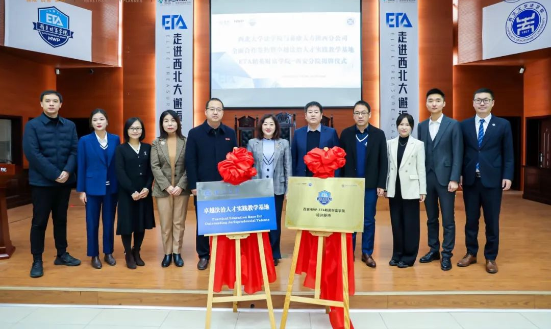 2023年12月22日上午,我院与泰康人寿陕西分公司全面合作签约暨卓越法治人才实践教学基地、ETA精英财富学院-西安分院揭牌仪式在长安校区模拟法庭成功举行。院党委书记李一凡,院长王思锋,副院长崔玲玲、许博,泰康人寿陕西分公司党委书记、总经理梁英,西安本部总经理李宝斌,总公司HWP-ETA精英财富学院主理人高垒,F1部经理王思恬,西安HWP负责人陈婵如等双方领导出席本次仪式。