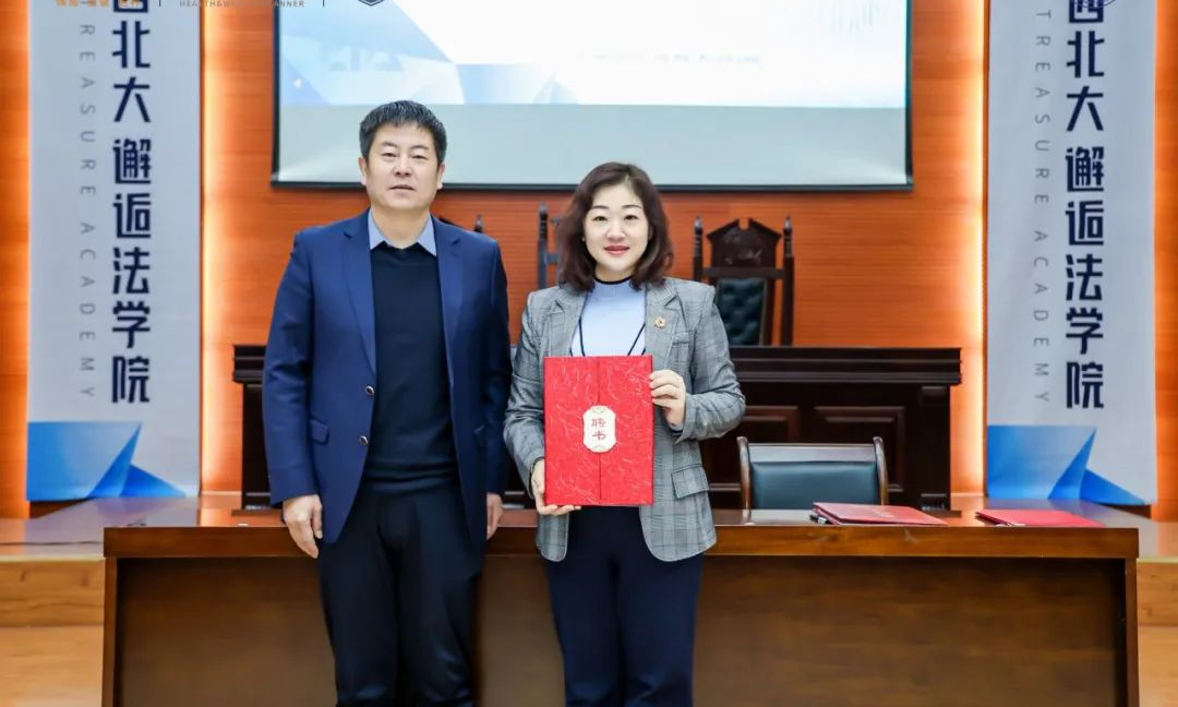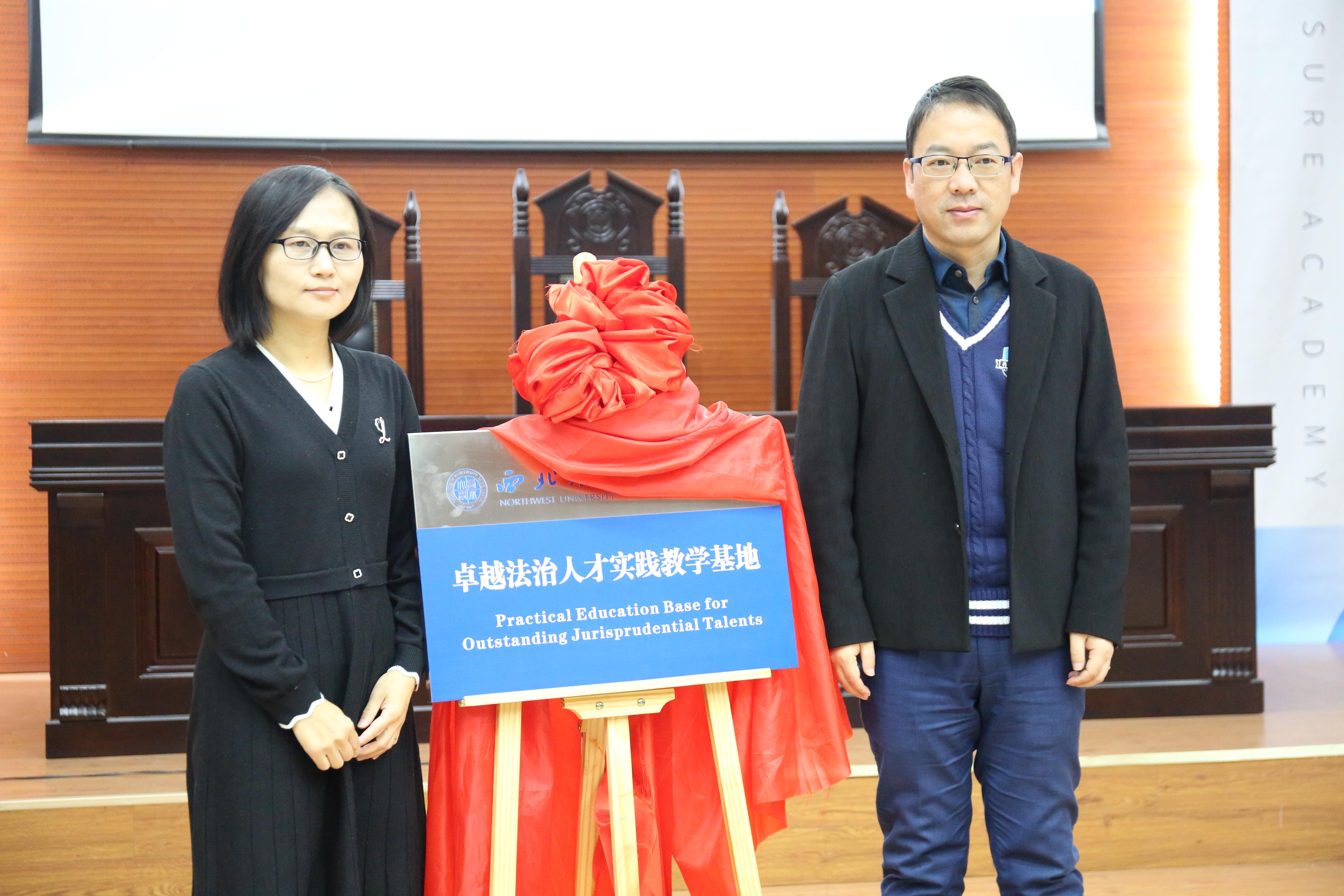 副院长崔玲玲与泰康人寿陕西分公司西安本部总经理李宝斌共同为卓越法治人才实践教学基地揭牌,以期共同促进协同育人新机制。
