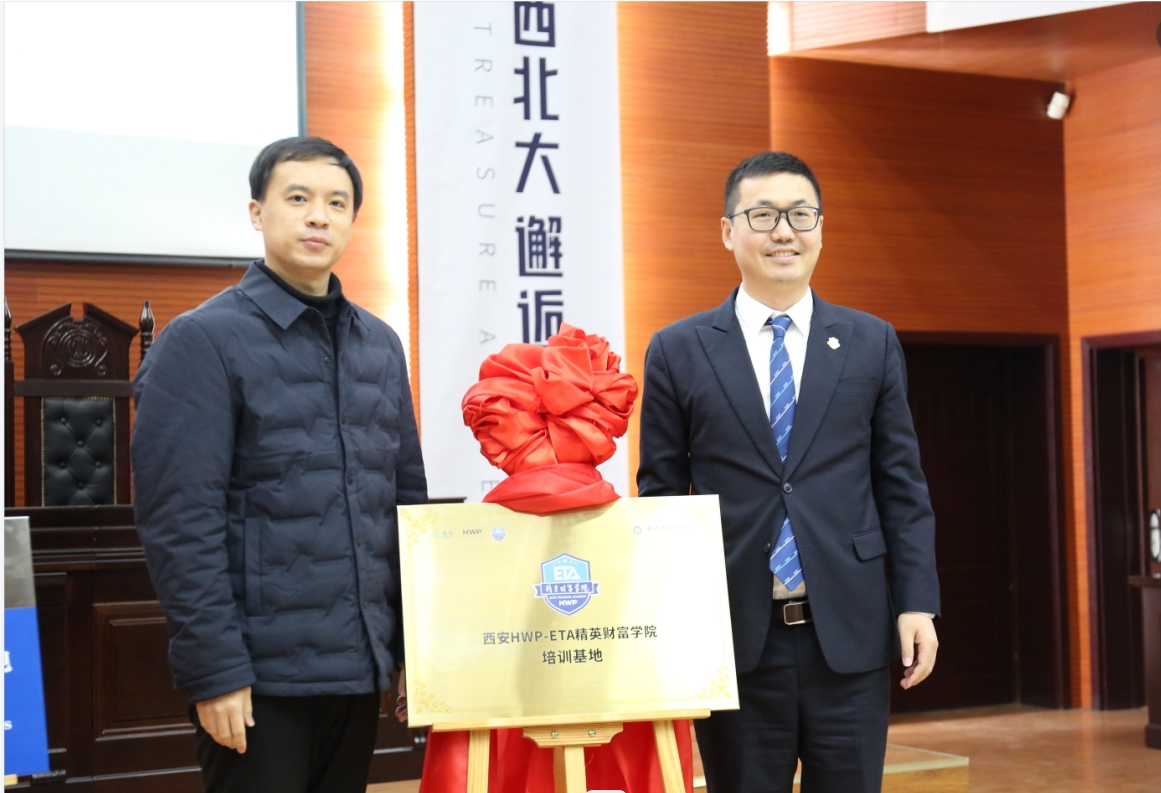 副院长许博与HWP-ETA精英财富学院主理人高垒共同为“HWP-ETA精英财富学院-西安分院”揭牌,旨在打造健康财富规划师培训体系在业内的顶级标杆。