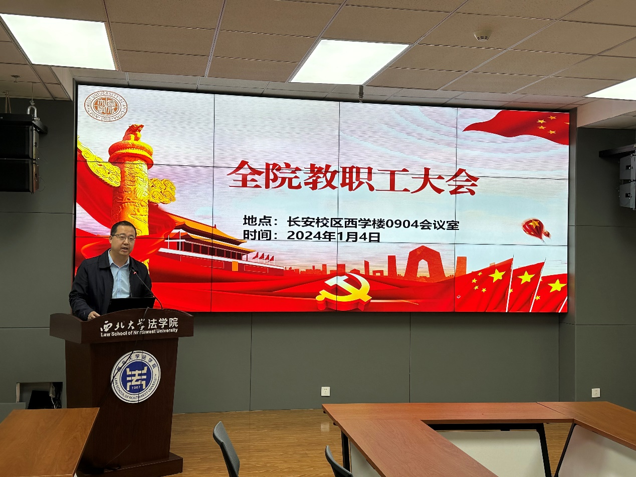 2024年1月4日,学院在长安校区西学楼0904会议室召开全体教职工大会,总结安排部署学院工作并学习传达学校第十四次党代会精神。学院全体班子成员、全体教职工参加大会,会议由学院党委书记李一凡主持。