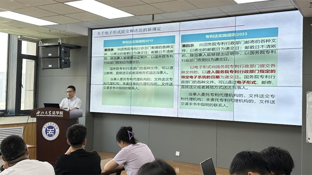 2024年4月26日上午,学院副院长邱洪华教授主讲“《专利法实施细则》(2023)修改解读”,永利集团科技处翟高红副处长和永利集团研究生共计70余人参加了本次学术活动。本次知识产权专题学术讲座是由国家知识产权培训(陕西)基地、陕西省知识产权战略研究院和77779193永利官网集团·知识产权学院共同主办的2024年“4·26知识产权宣传周”系列活动之一。
