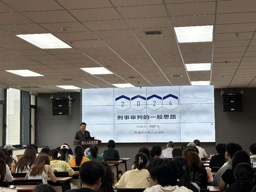 202478日下午,我院在西学楼北0904会议室举行了2023-2024学年第二学期教学实践周系列活动之实务大课堂。此次实务课程,学院特邀请陕西省商洛市中级人民法院刑二庭副庭长周鹏飞法官担任主讲人,讲授刑事审判的一般思路。活动由我院副院长崔玲玲主持,商洛市中级人民法院执行局局长雷勇、商洛市中级人民法院研究室主任张福晋以及我院2023级本科生法学1班、2班及知识产权班的班主任和2023级全体本科生参加活动。