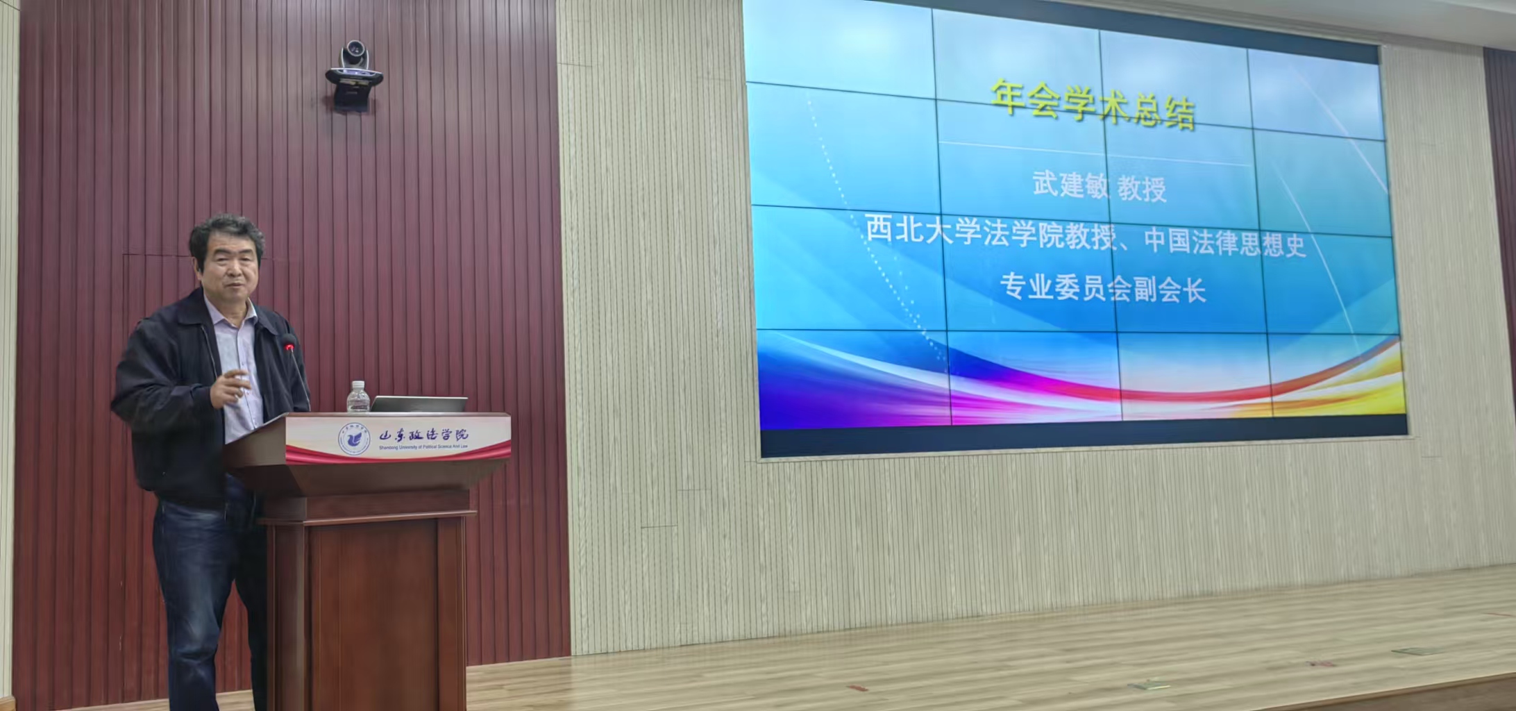 我院武建敏教授向会议提交了“道家法哲学的本体依赖及实践转向”的学术论文并承担了大会学术总结的工作任务。在会议学术总结中,他着重分析了本次学术会议的三个特色:一是研讨领域的深化拓展;二是方法论形态的多样化;三是本次学术会议主题“传统与现代”之深远意蕴。传统如何被带入现代?中国法律思想史的时间不是一条直线,而是一个圆圈,传统本就在当下,未来亦在当下,这才是思想发展的基点。在本次会议上,武建敏教授当选为中国法律思想史专业委员会常务副会长。(供稿人:武建敏)