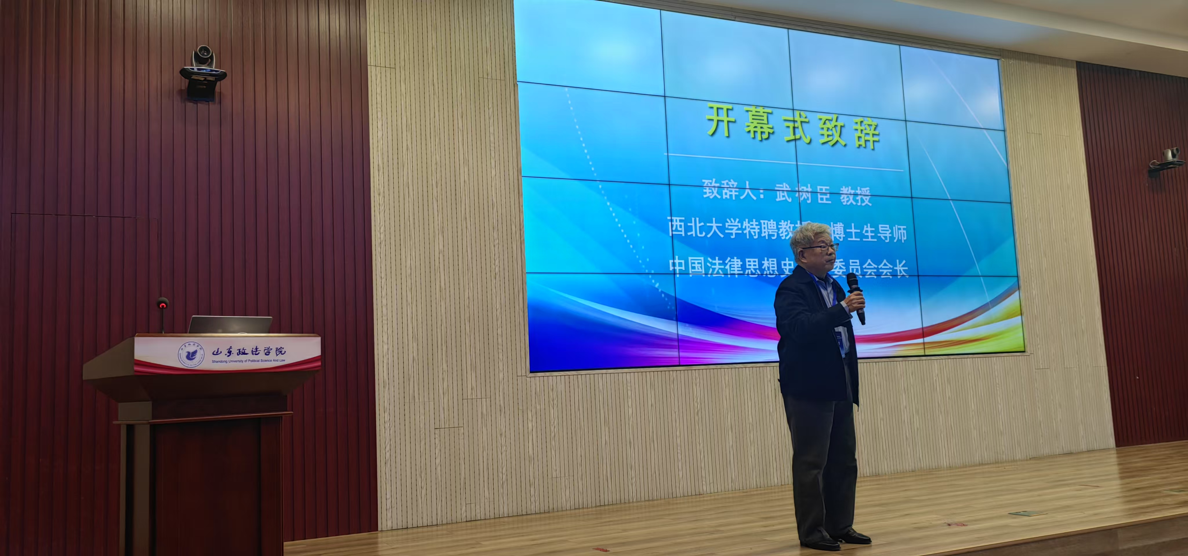 我院武树臣教授在大会开幕式上致辞,表达了对本次学术会议的真切期待和美好祝愿。他同时做了“孔子‘听讼犹仁’与‘无讼’新解”的主旨报告,对传统话题进行了崭新的诠释,充分展示了其雄厚的学术底蕴和扎实的文字学功力。作为上一届中国法律思想史专业委员会会长,在大会闭幕式上他代表上一届理事会致辞,回顾了从中国法律思想史研究会到中国法律思想史专业委员会的发展变化,同时展望了研究会的未来发展图景。