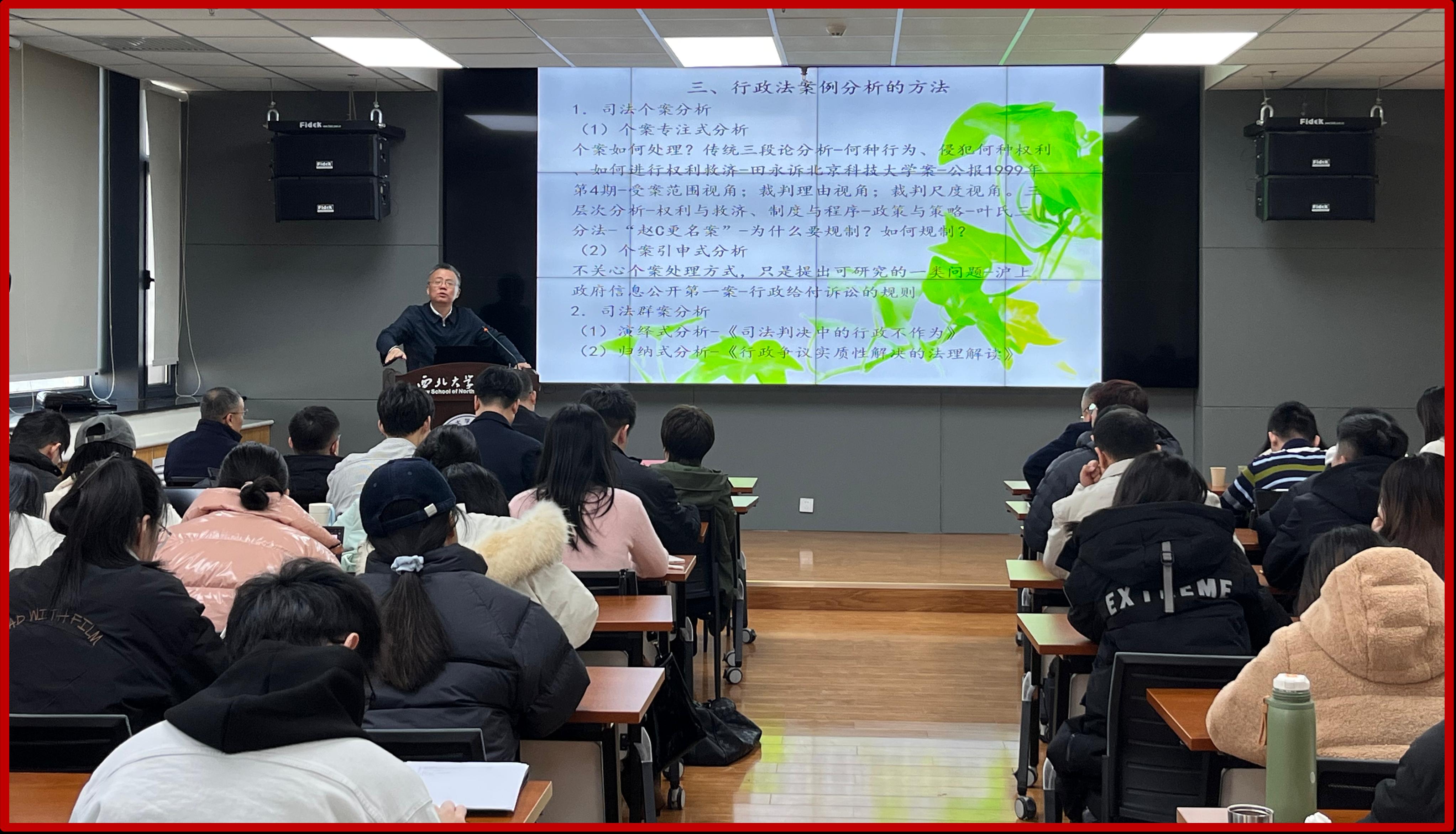 2024年12月15日上午,教育部青年长江学者、华东政法大学永利集团章志远教授应邀在我院作了题为“行政法案例研习漫谈”的学术讲座。讲座由学院院长王思锋教授主持,张炜达教授、潘怀平教授、王秀梅教授、代水平副教授、姜昕副教授、李国华博士、侯欢博士、刘桢博士、焦琰博士、高小芳博士以及近百名本科生、硕士生参加。