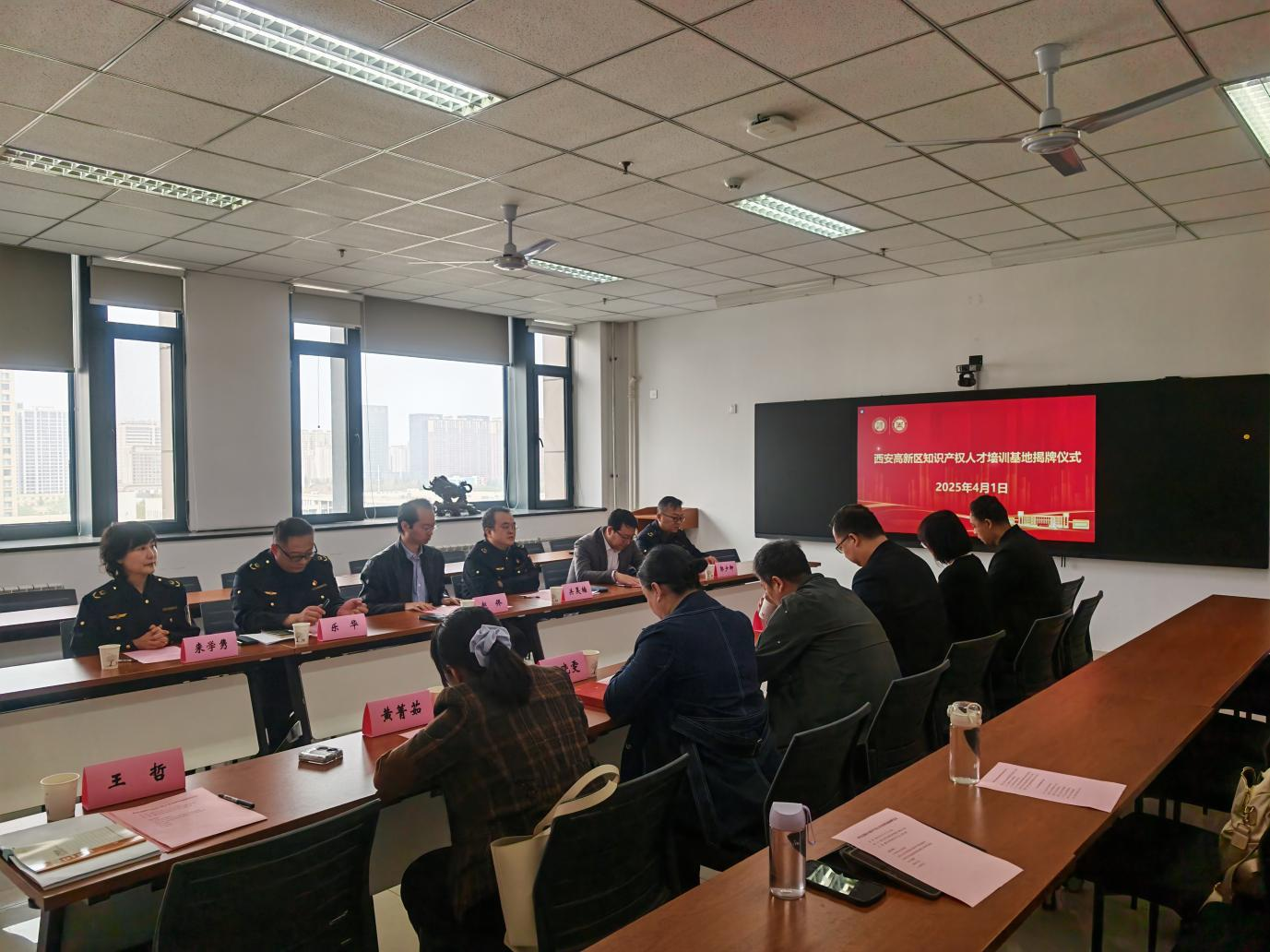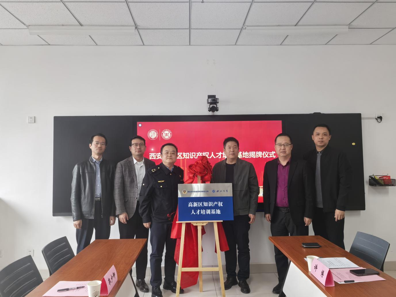 西安市市场监督管理局高新区分局党委委员、副局长关昊楠,高新区组织人事部副部长赵佟,高新区科技创新局副局长石峰与77779193永利官网集团(知识产权学院)党委书记李一凡,院长王思锋,副院长许博共同为“西安高新区知识产权人才培训基地”揭牌。