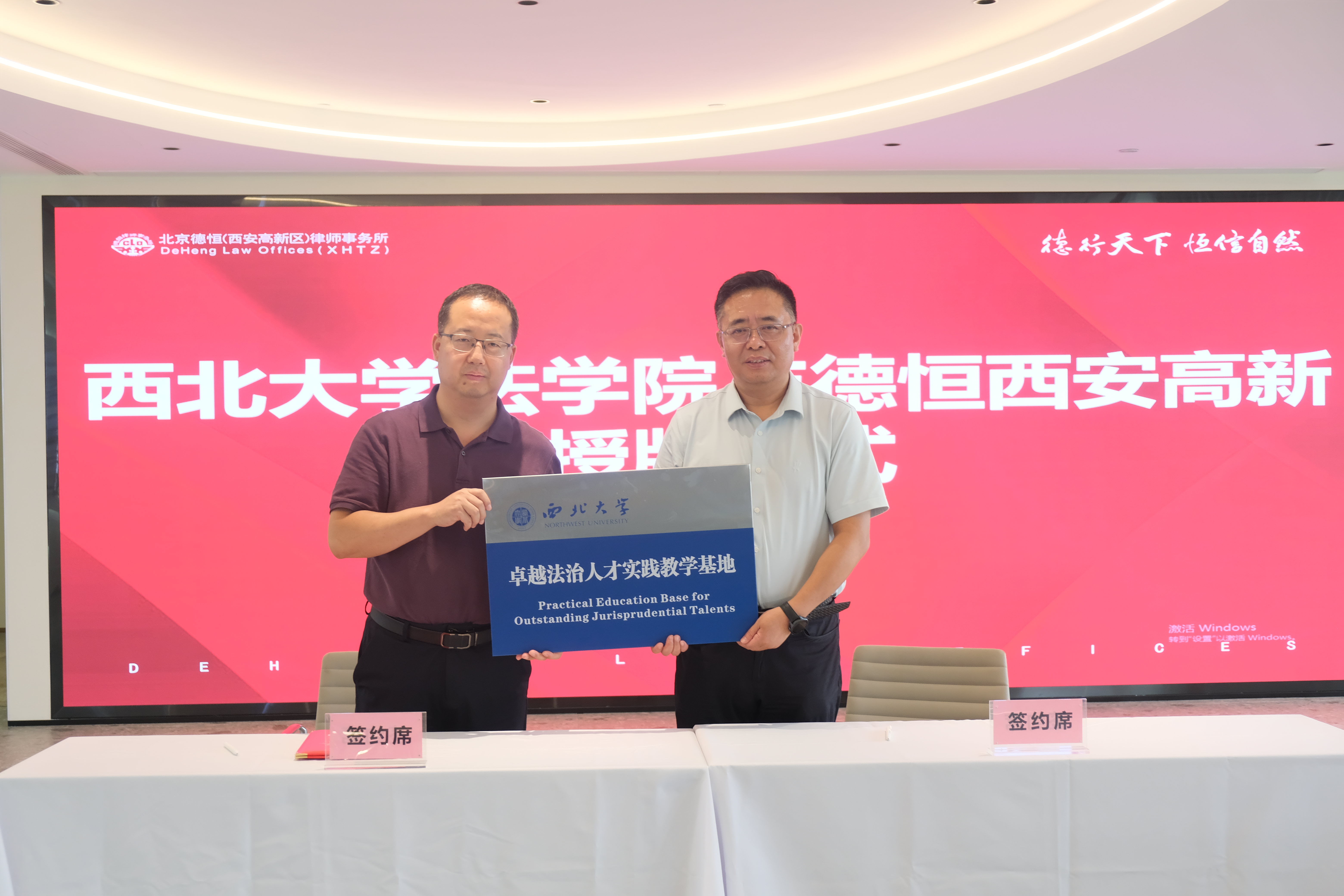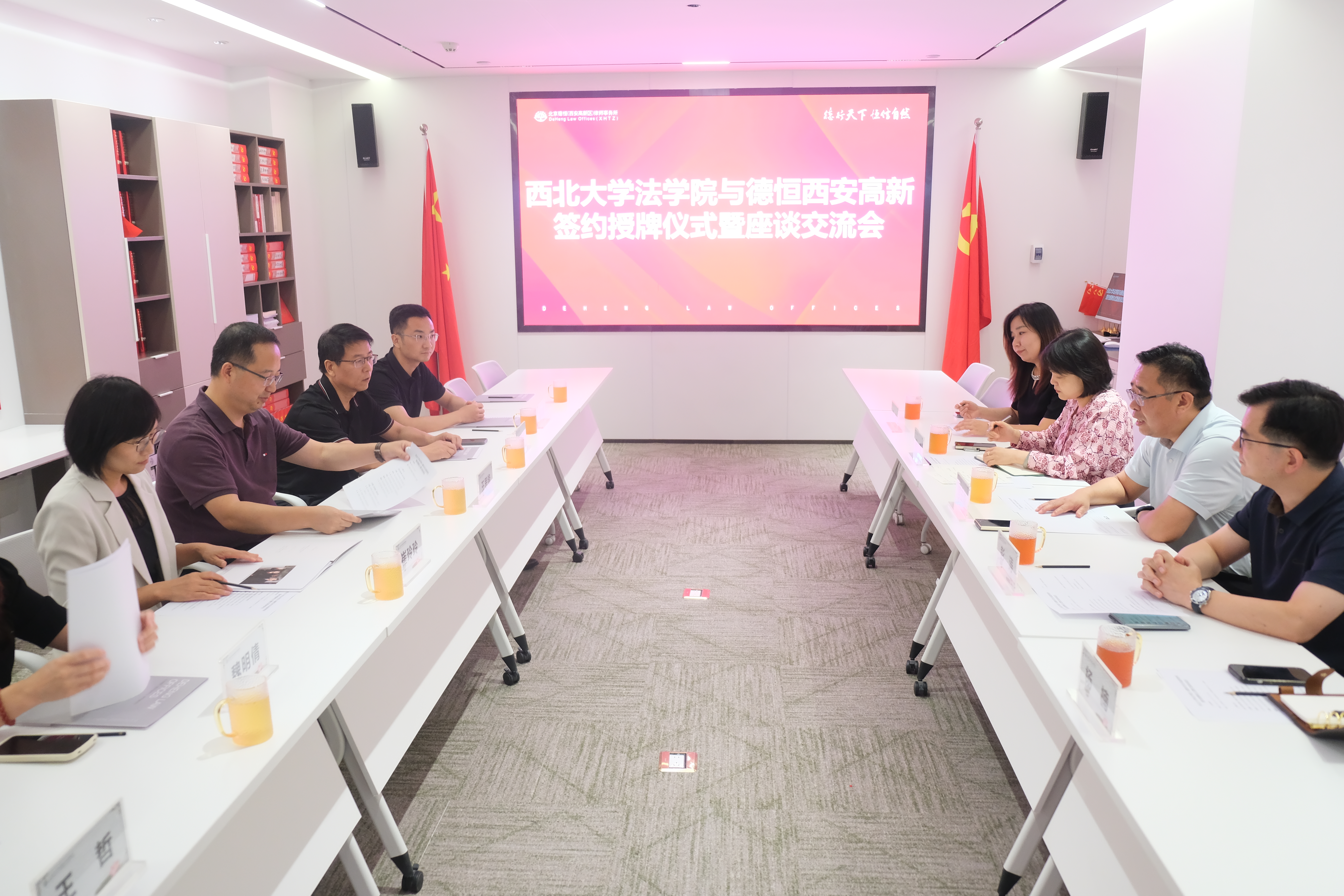 2025年8月5日下午,学院与德恒(西安高新区)律师事务所签约授牌仪式在北京德恒(西安高新区)律师事务所顺利举行。北京德恒(西安高新区)律师事务所主任、高级合伙人闫玉新,业务指导委员会主任、高级合伙人彭涛,高级合伙人宋欢,知识产权专业委员会主任、合伙人延静,学院院长王思锋,副院长崔玲玲,经济法学教研部主任刘建仓,学院办公室主任王哲等参加仪式。