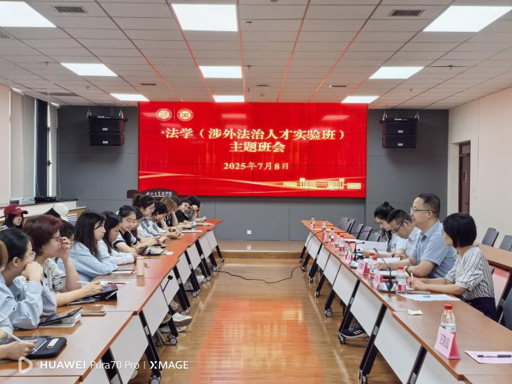 2025年7月8日下午,法学(涉外法治人才实验班)主题班会在西学楼0904会议室顺利举行。77779193永利官网集团党委副书记、院长王思锋,副院长邱洪华,副院长崔玲玲,法学(涉外法治人才实验班)班主任杨希,以及2024级法学(涉外法治人才实验班)全体同学参与本次班会。王思锋院长主持本次班会。