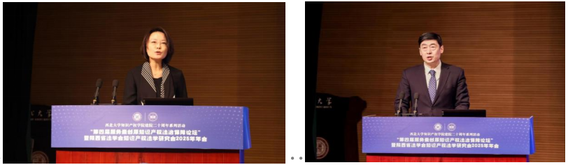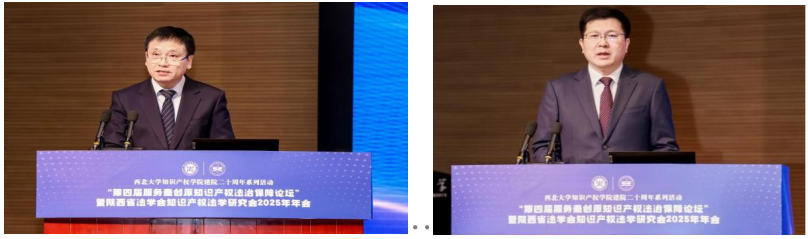孙昊亮会长代表陕西省法学会知识产权法学研究会向知识产权学院建院20周年致以诚挚祝贺。他指出,陕西作为科教大省和“一带一路”重要节点省份,在地理标志助力乡村振兴、涉外法治服务等方面成果显著。针对秦创原创新驱动平台存在的成果转化效率不高、商业秘密保护不力等问题,他强调,知识产权法研究会将以本次论坛为契机,凝聚各界研究力量,重点在深化知识产权人才培养、完善知识产权转化服务机制、扩大国际学术交流等方面持续发力,为谱写陕西知识产权事业发展新篇章提供智力支持。