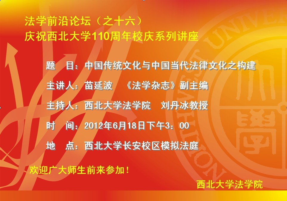 法学前沿论坛(之十六)暨庆祝我校110周年校庆系列讲座