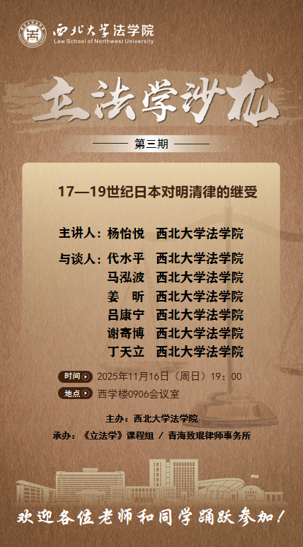 立法学沙龙(第三期)——17至19世纪日本对明清律的继受
